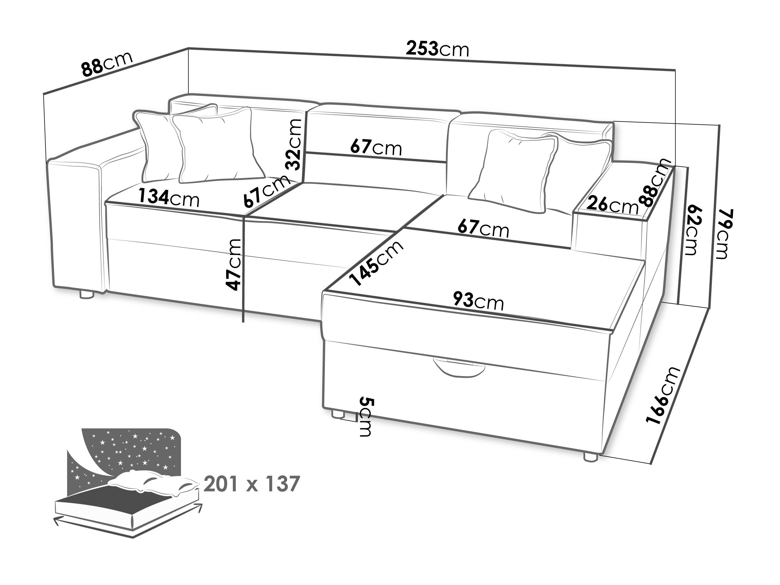 Sengekasse dimensioner: