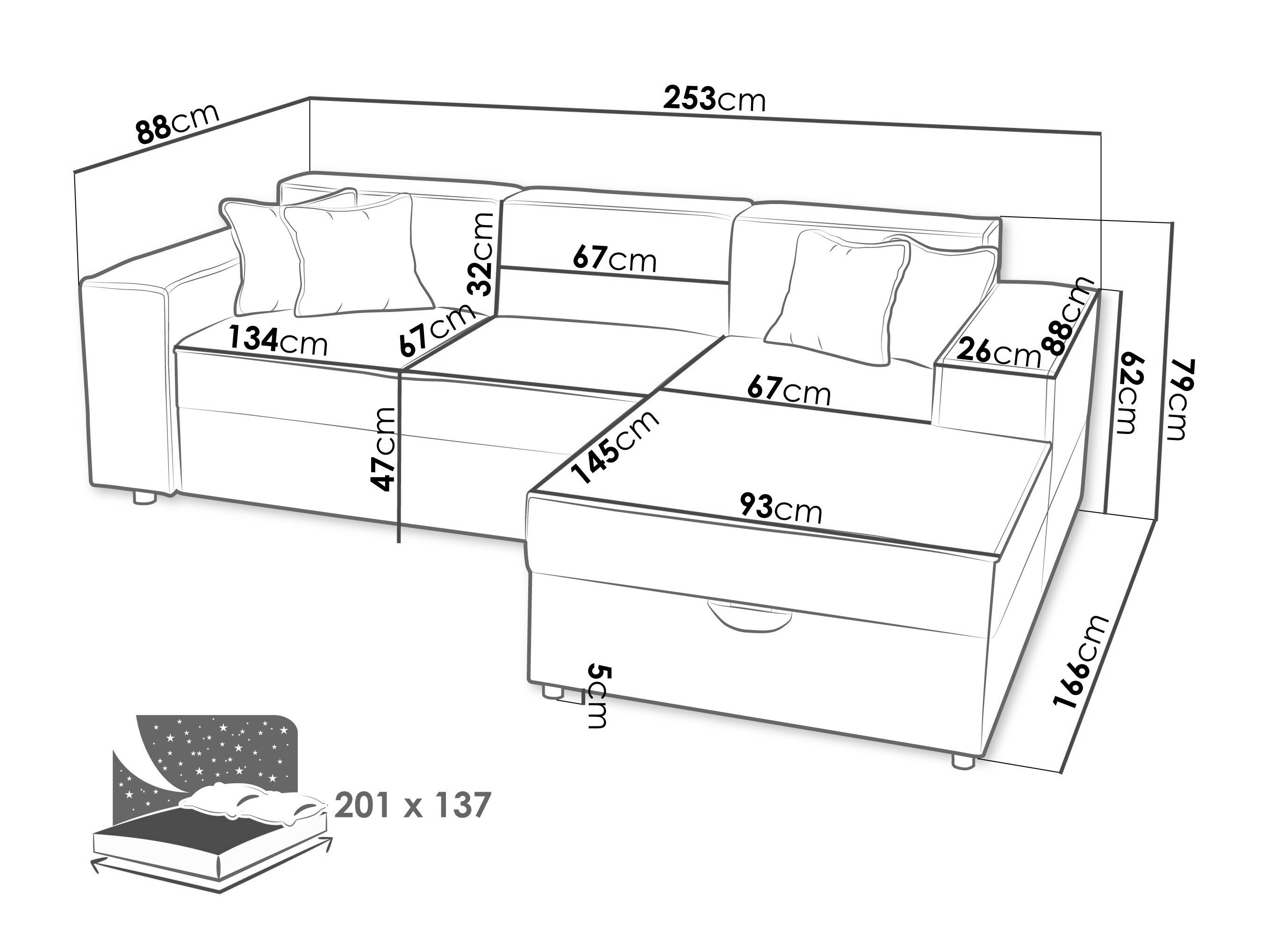 Sengekasse dimensioner: