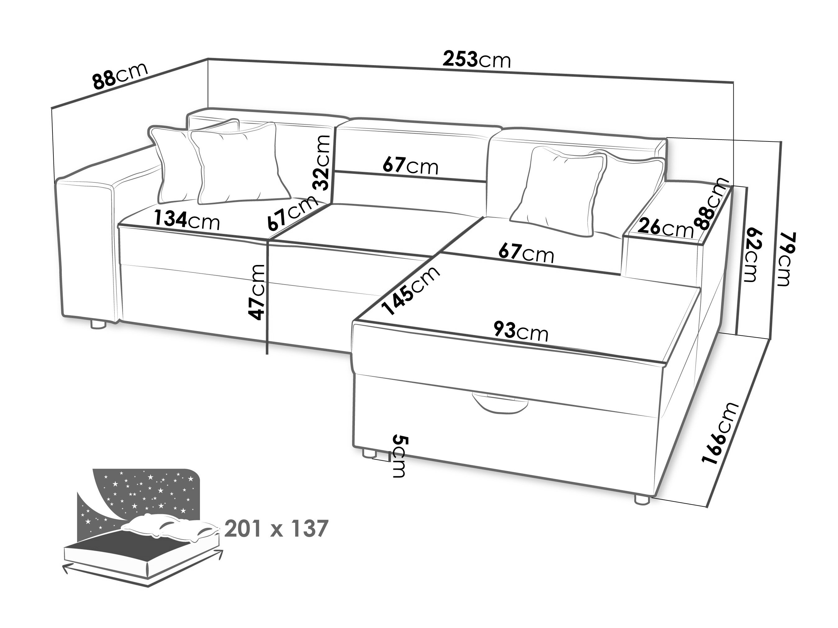 Sengekasse dimensioner: