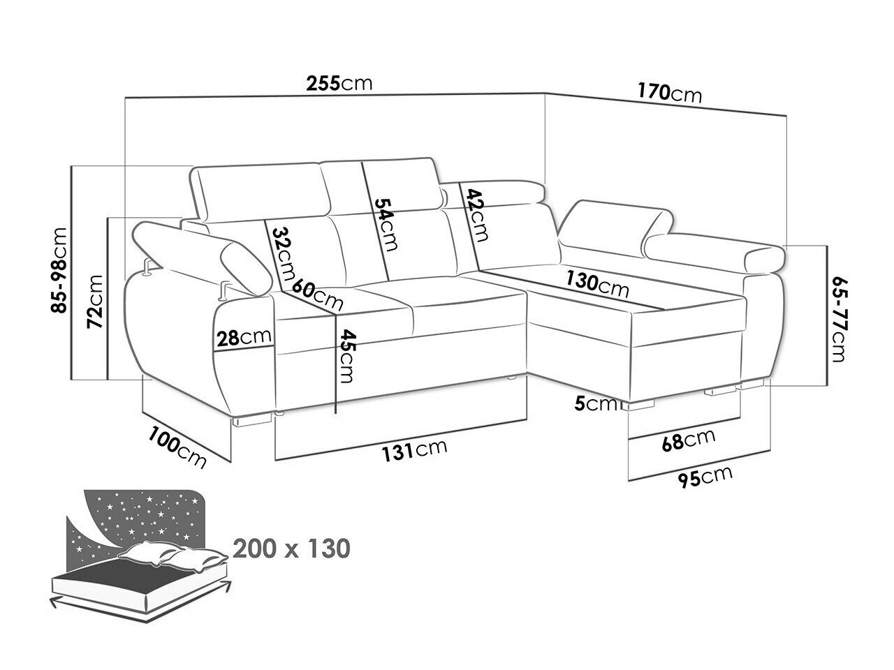Sengekasse dimensioner: