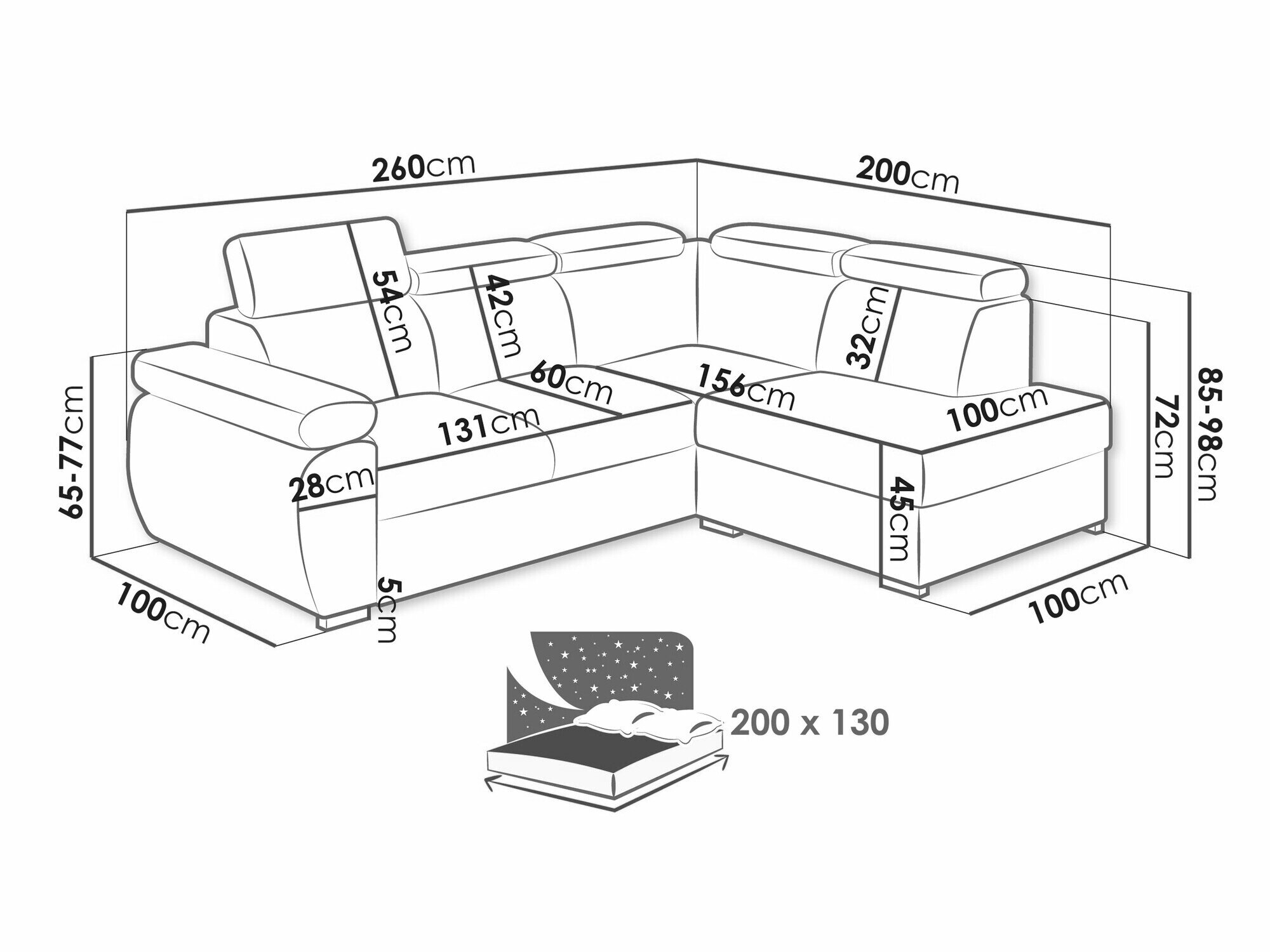 Længde på soveområde: