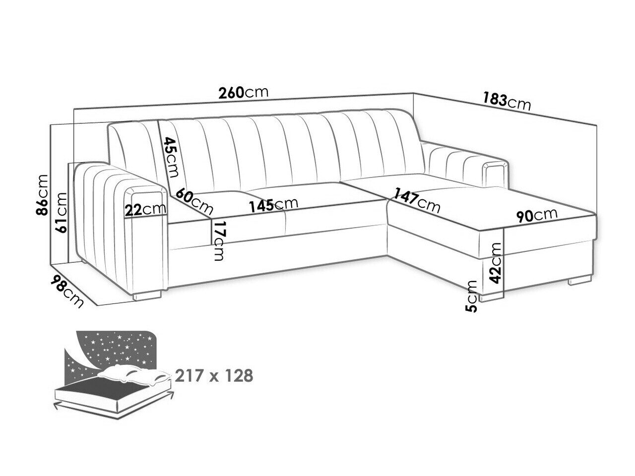 Sengekasse dimensioner: