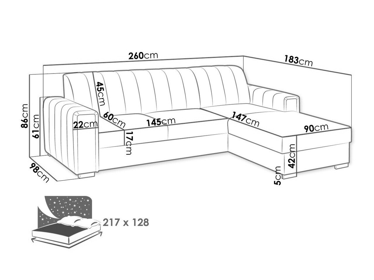 86 cm  260 cm  183 cm