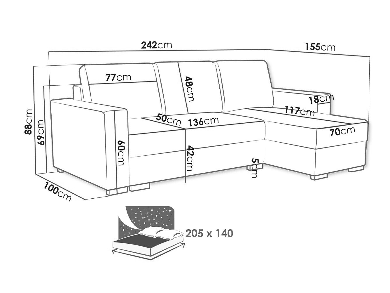 Sengekasse dimensioner: