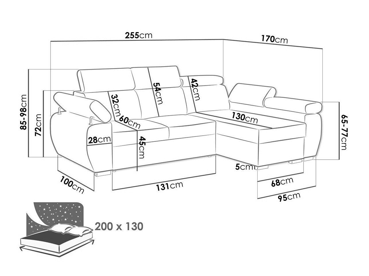 Sengekasse dimensioner: