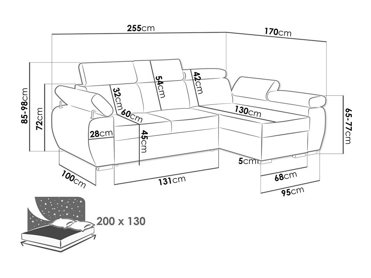 Sengekasse dimensioner: