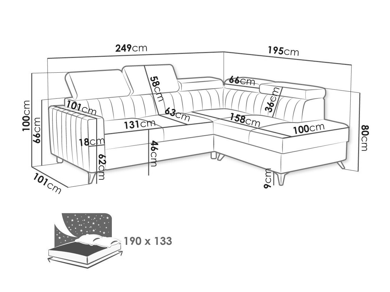 80 cm  249 cm  195 cm