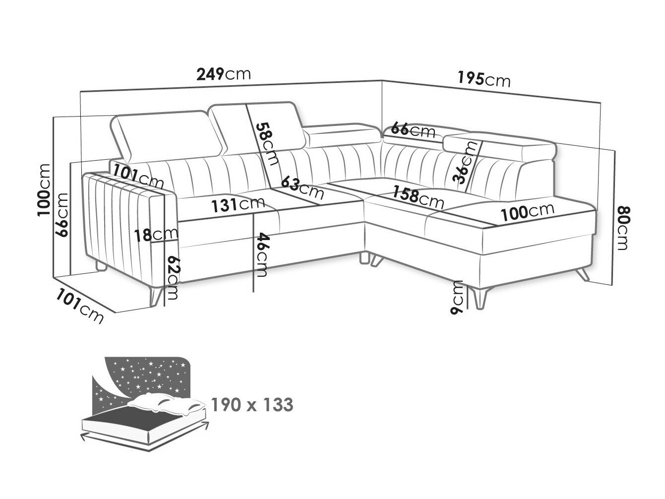 Sengekasse dimensioner: