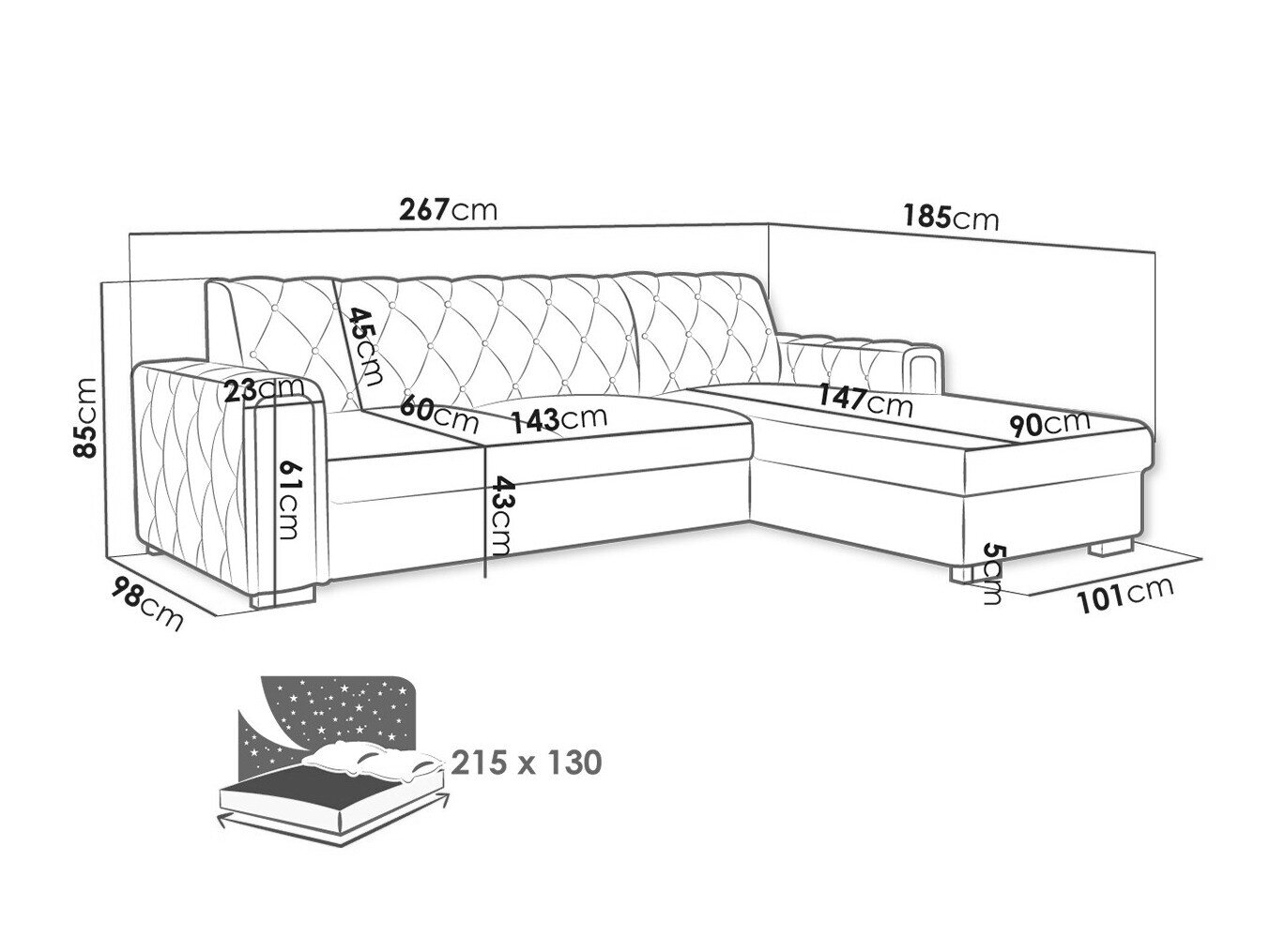Sengekasse dimensioner: