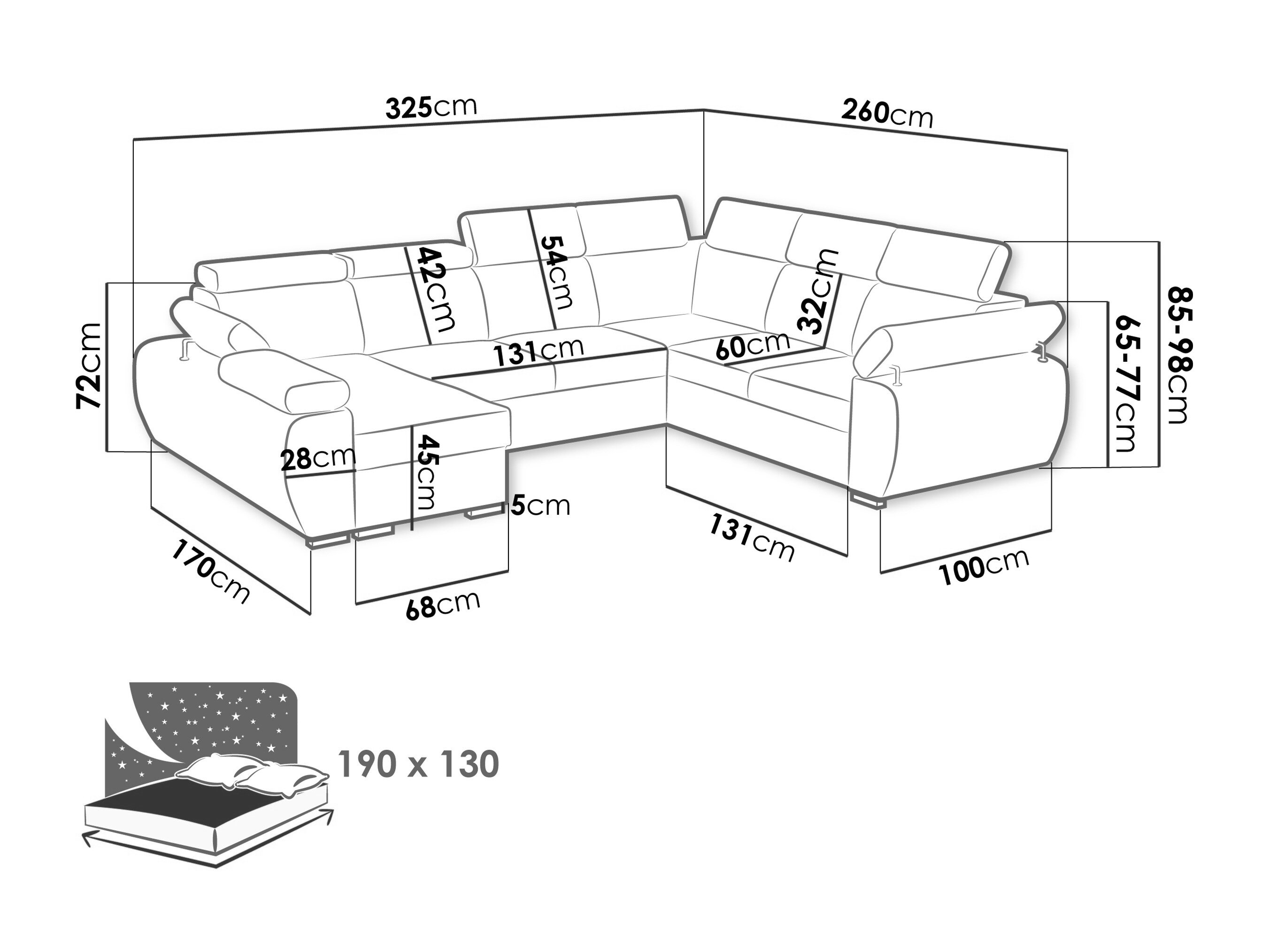 23 x 165 x 65; 19 x 118 x 88 cm