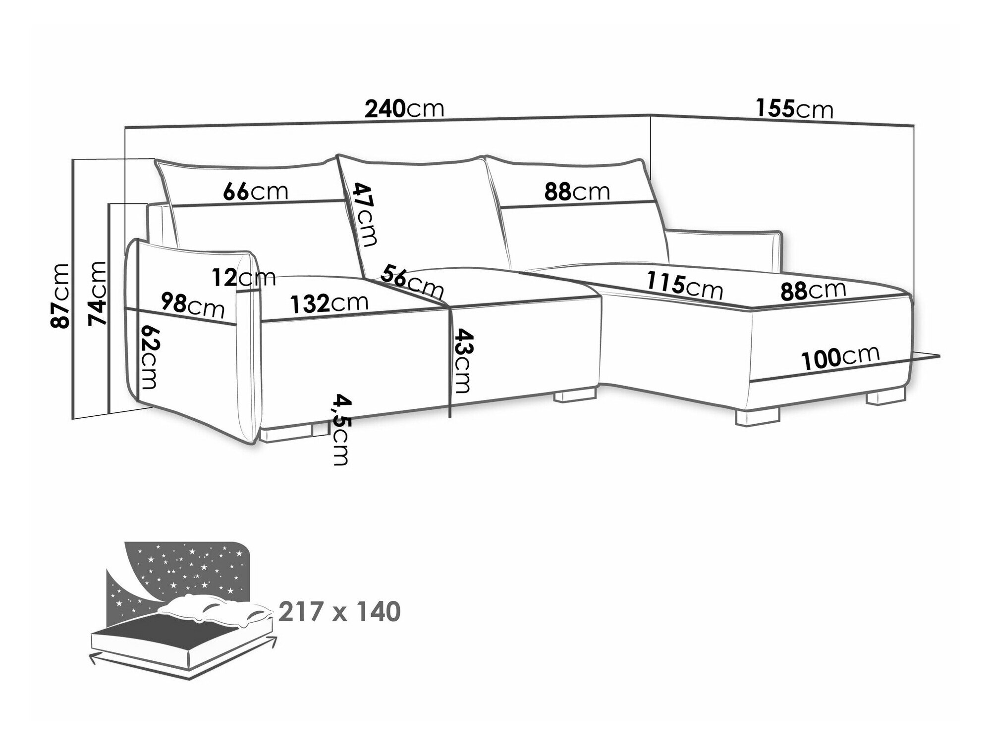 Længde på soveområde: