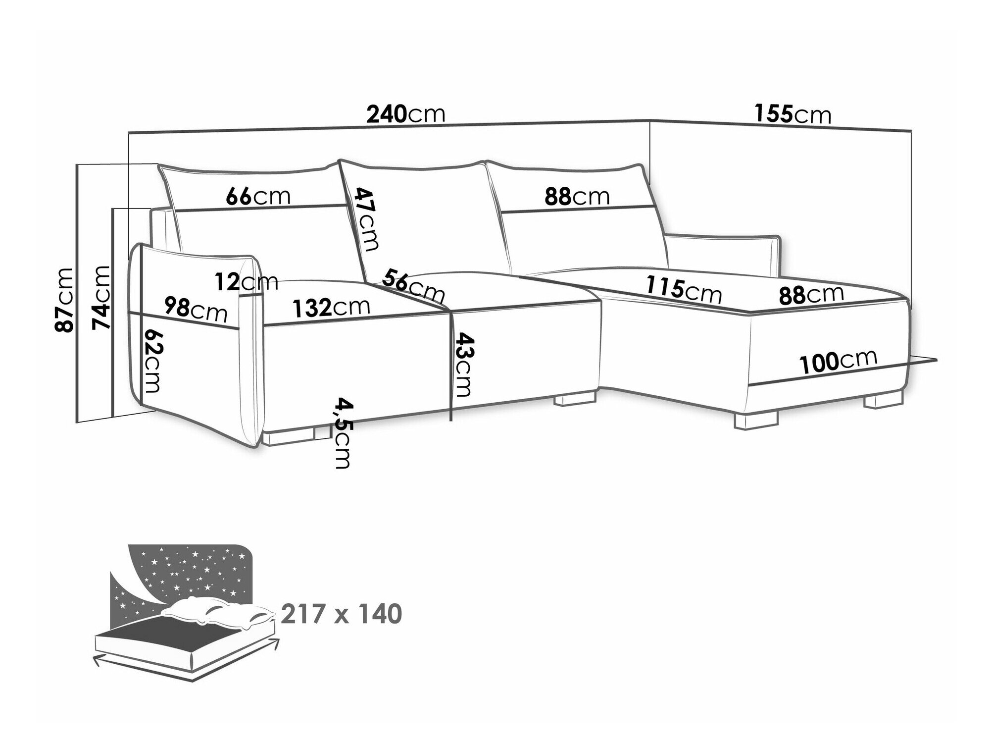 Længde på soveområde:
