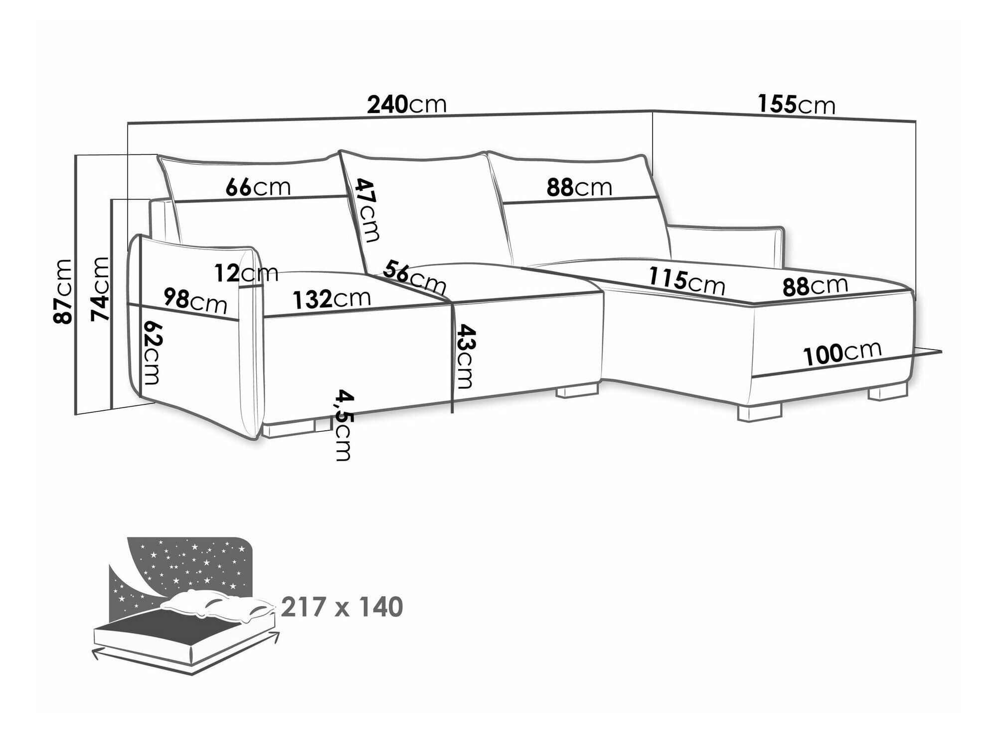 Længde på soveområde: