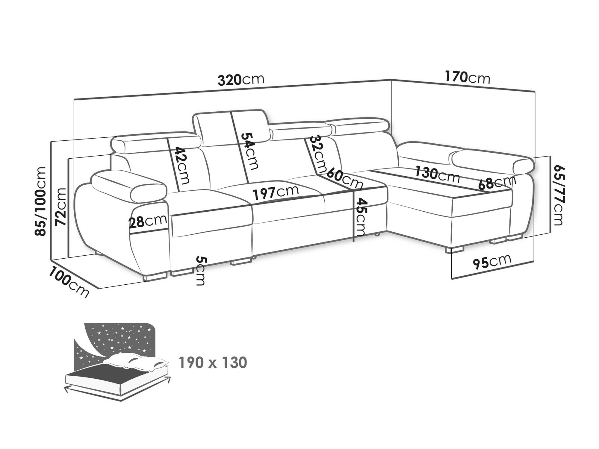 Længde på soveområde: