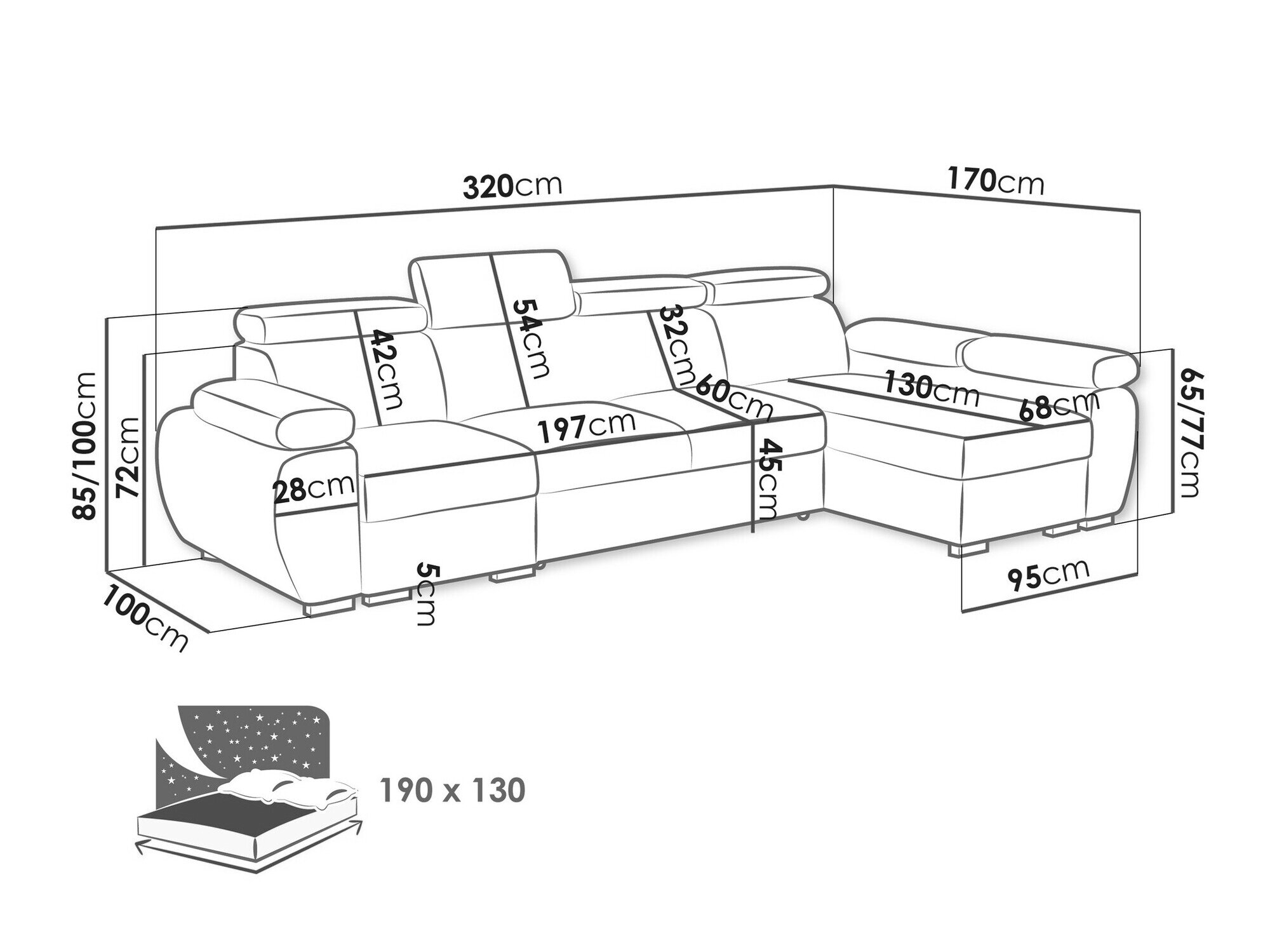 Længde på soveområde: