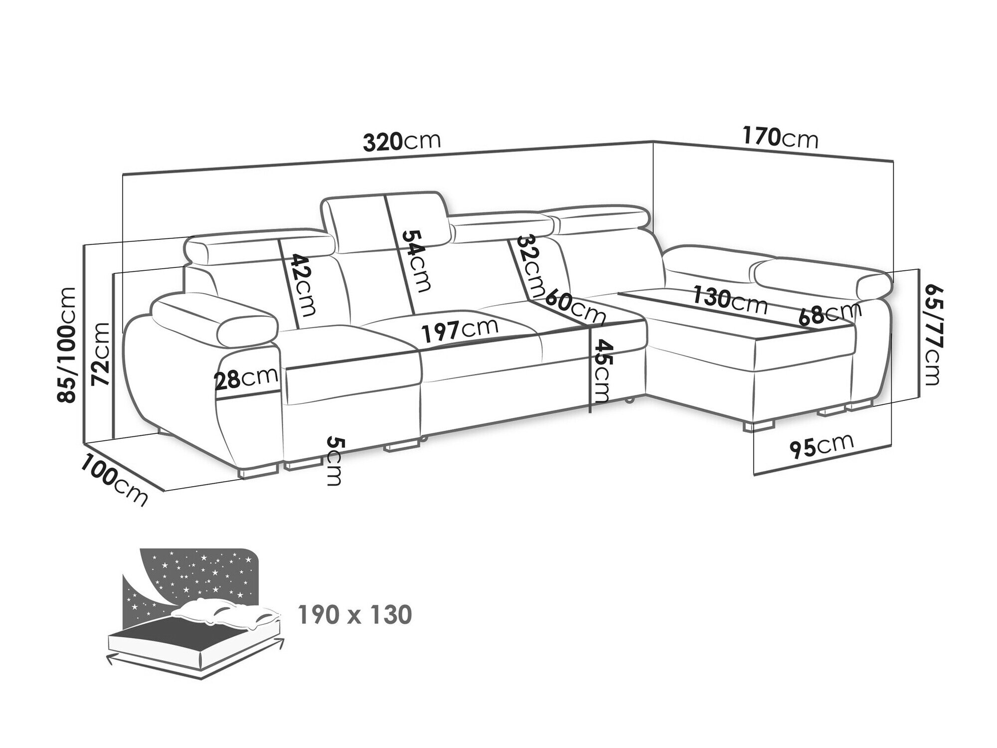Længde på soveområde: