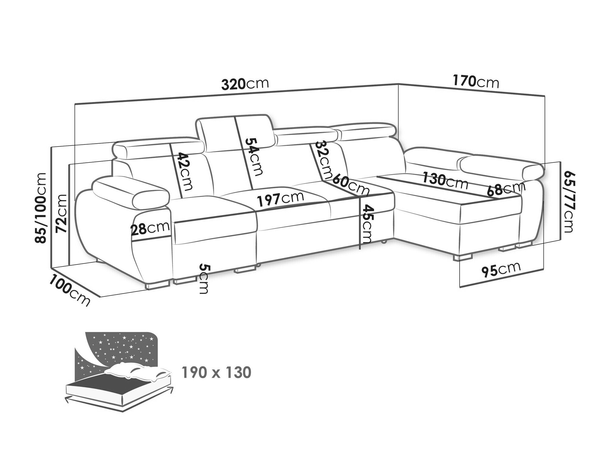 Længde på soveområde: