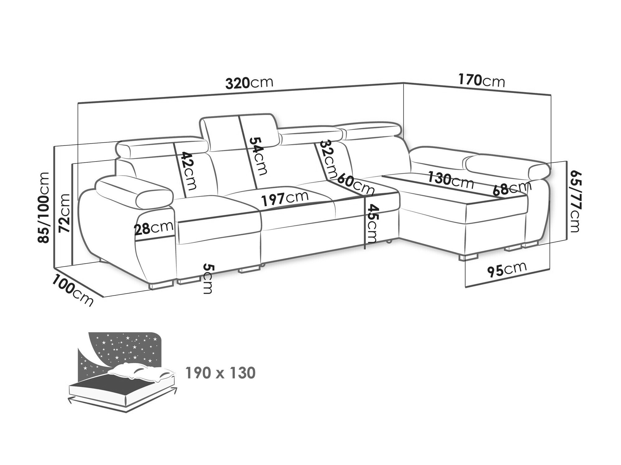 Længde på soveområde: