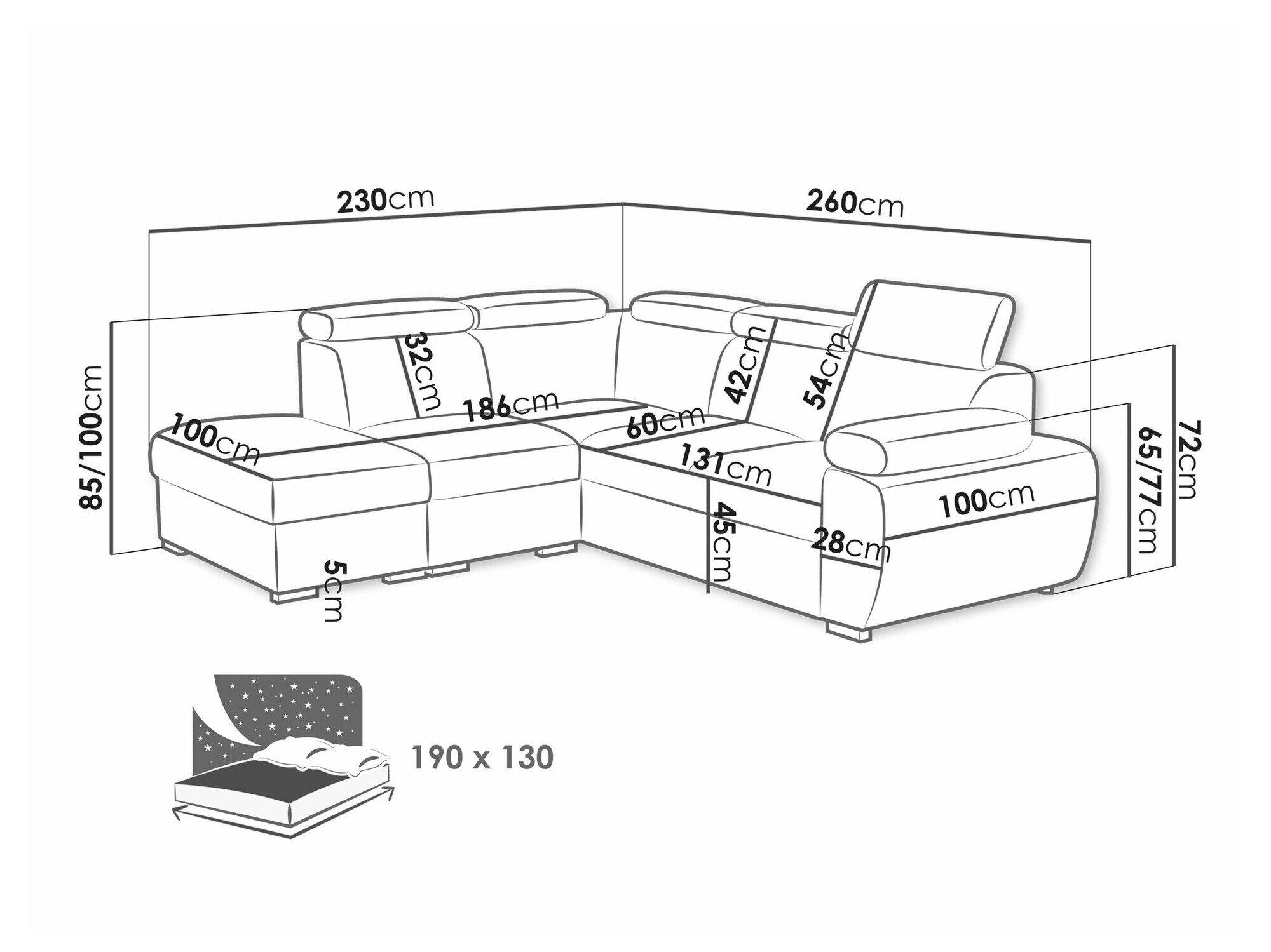 Længde på soveområde: