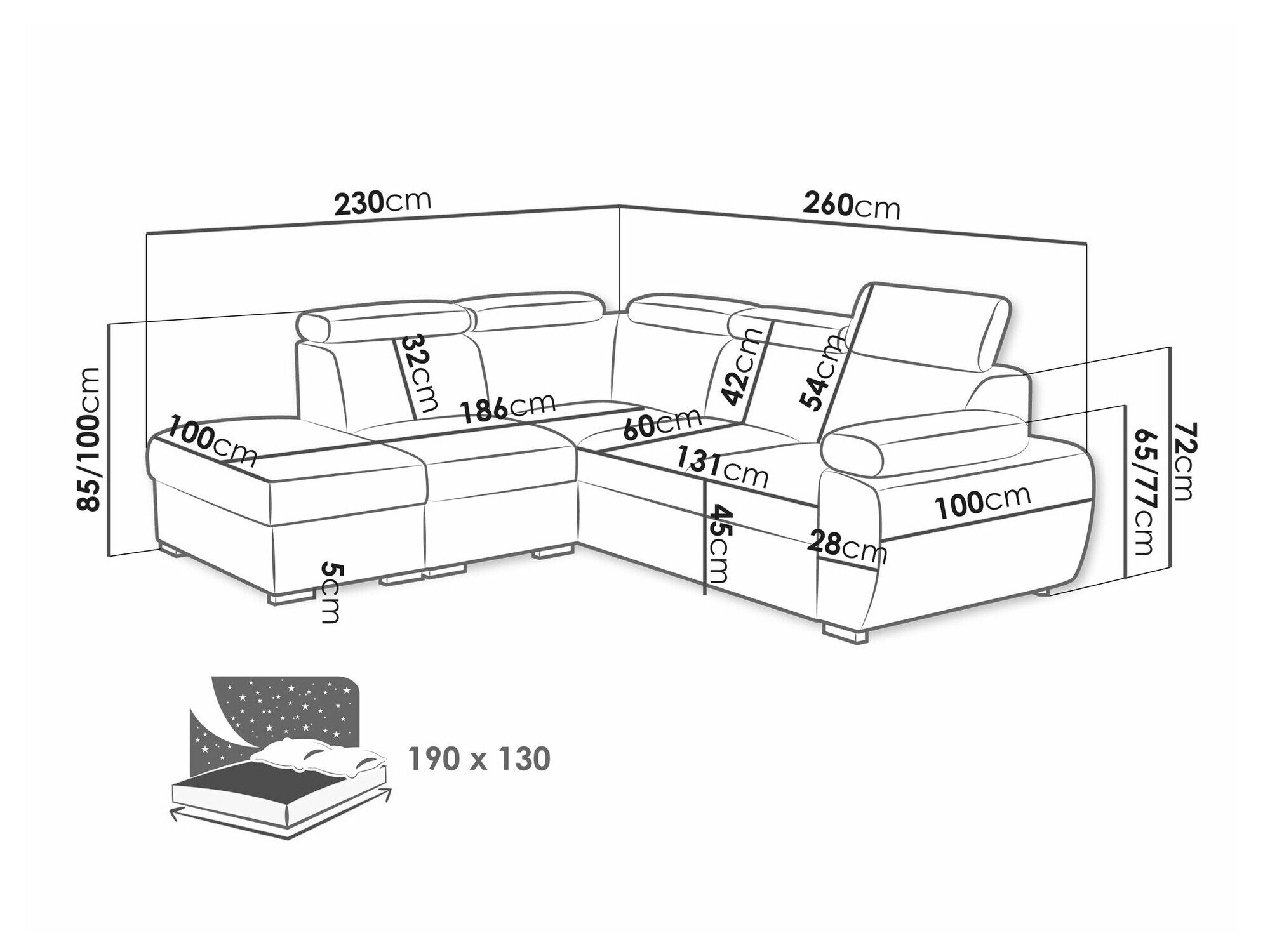 Længde på soveområde: