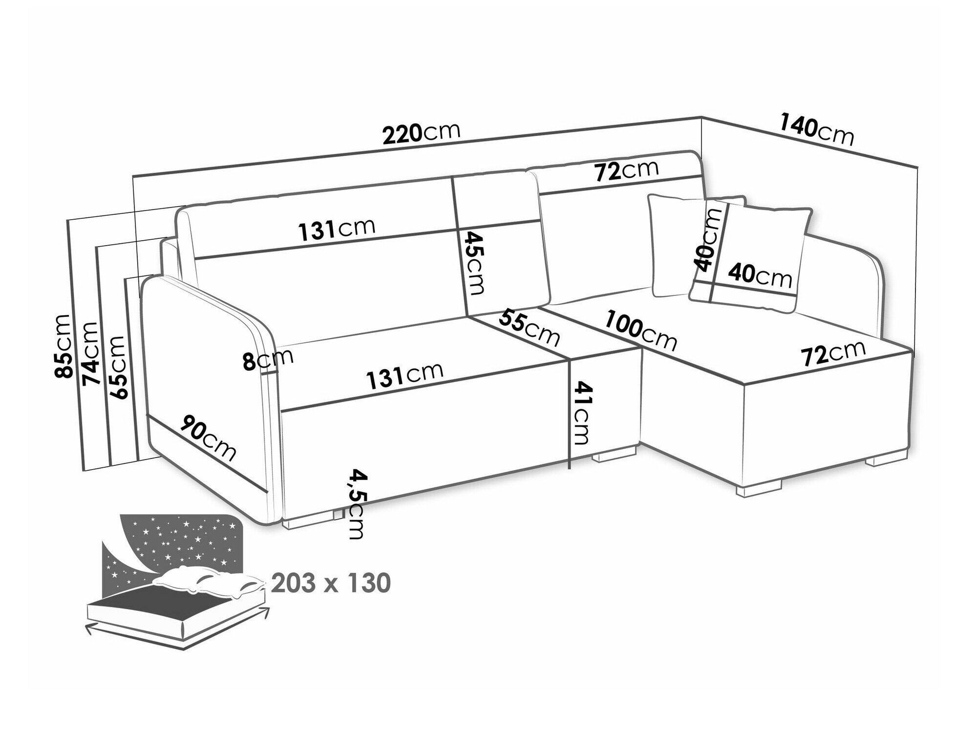 Sengekasse dimensioner: