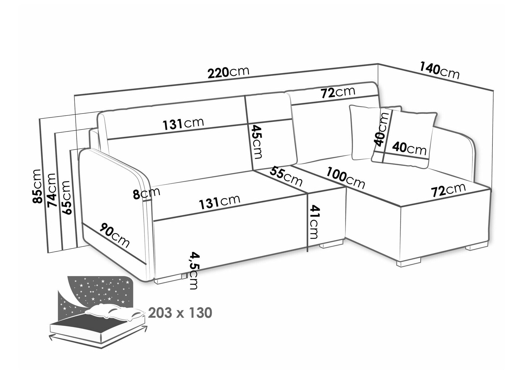 Sengekasse dimensioner:
