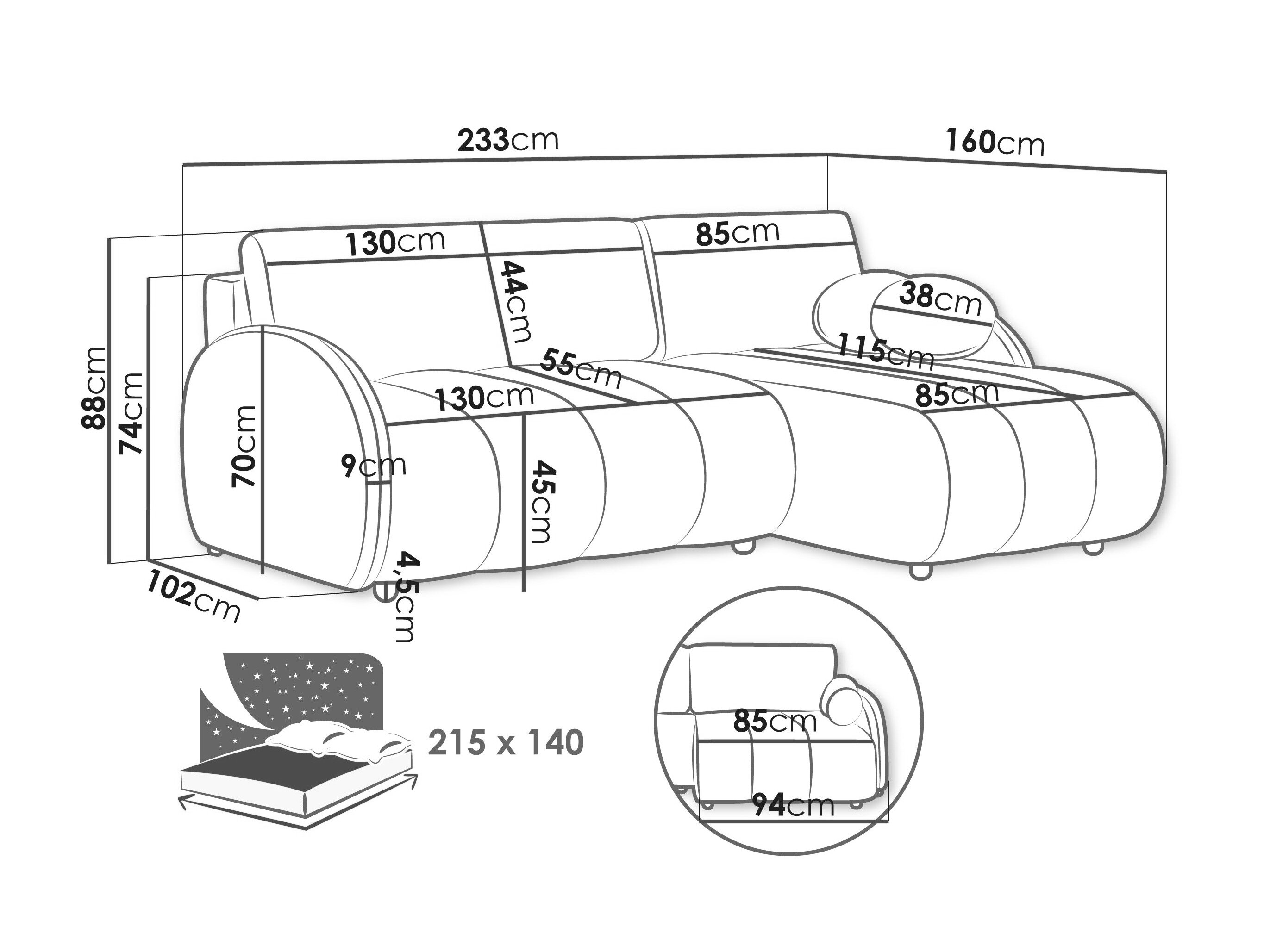 233 cm