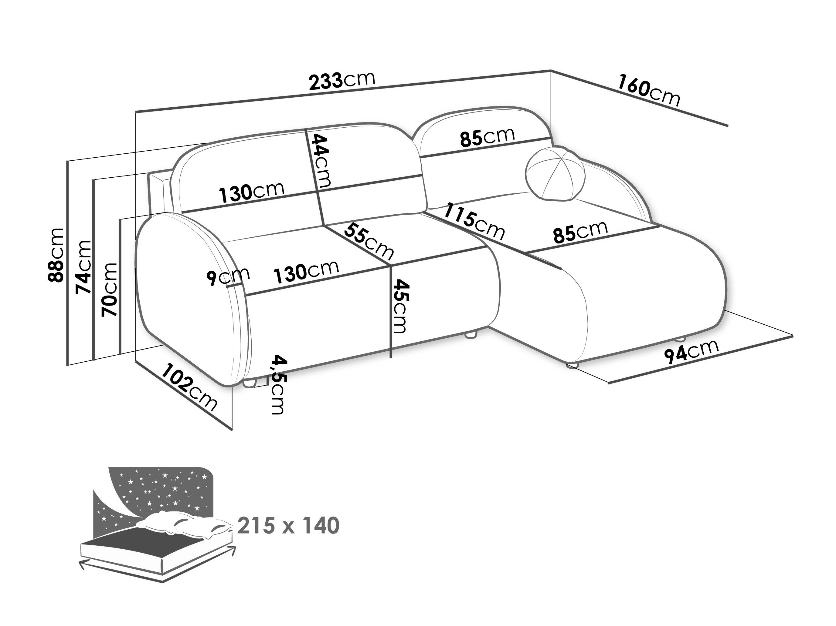 233 cm