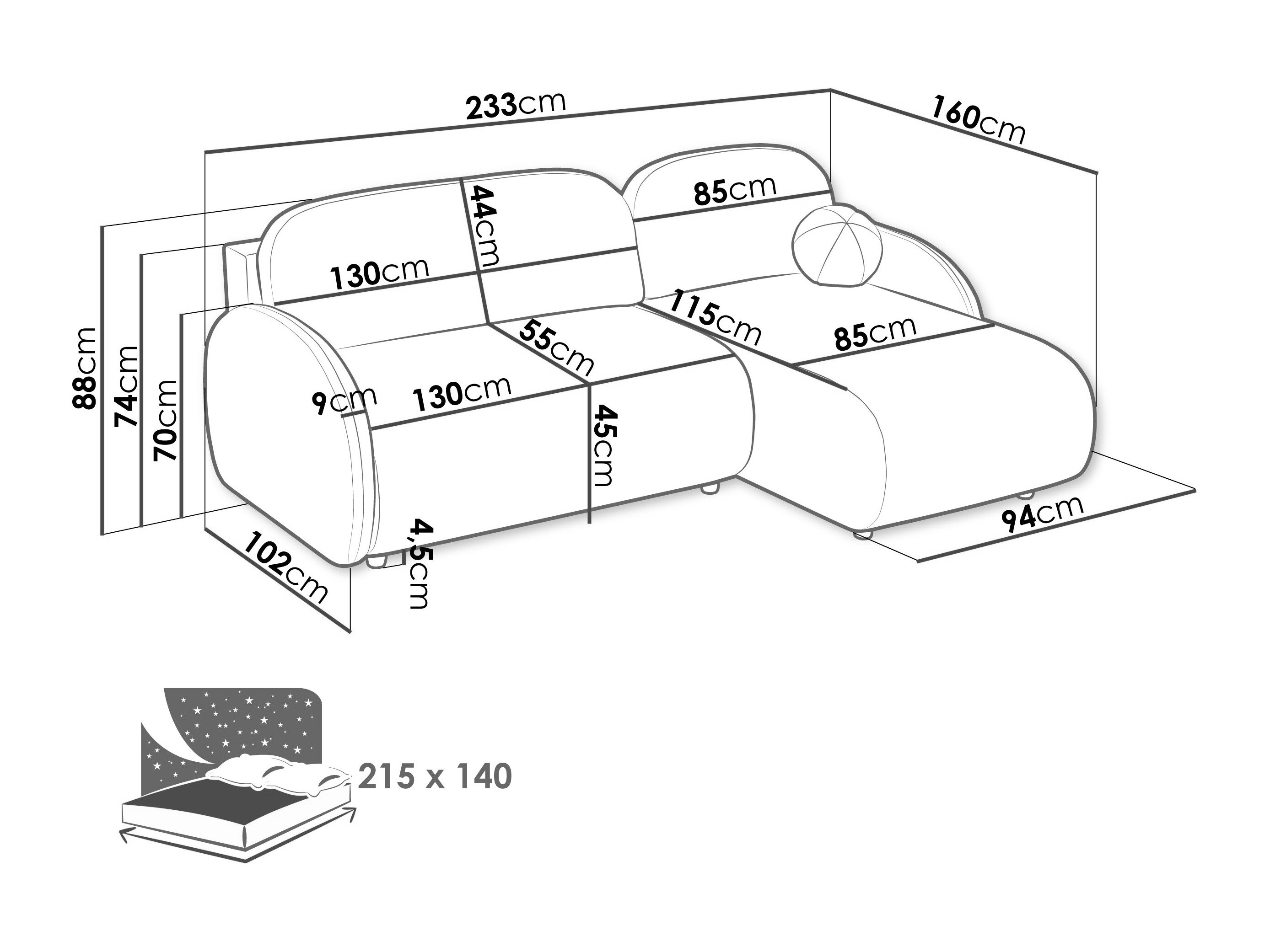233 cm