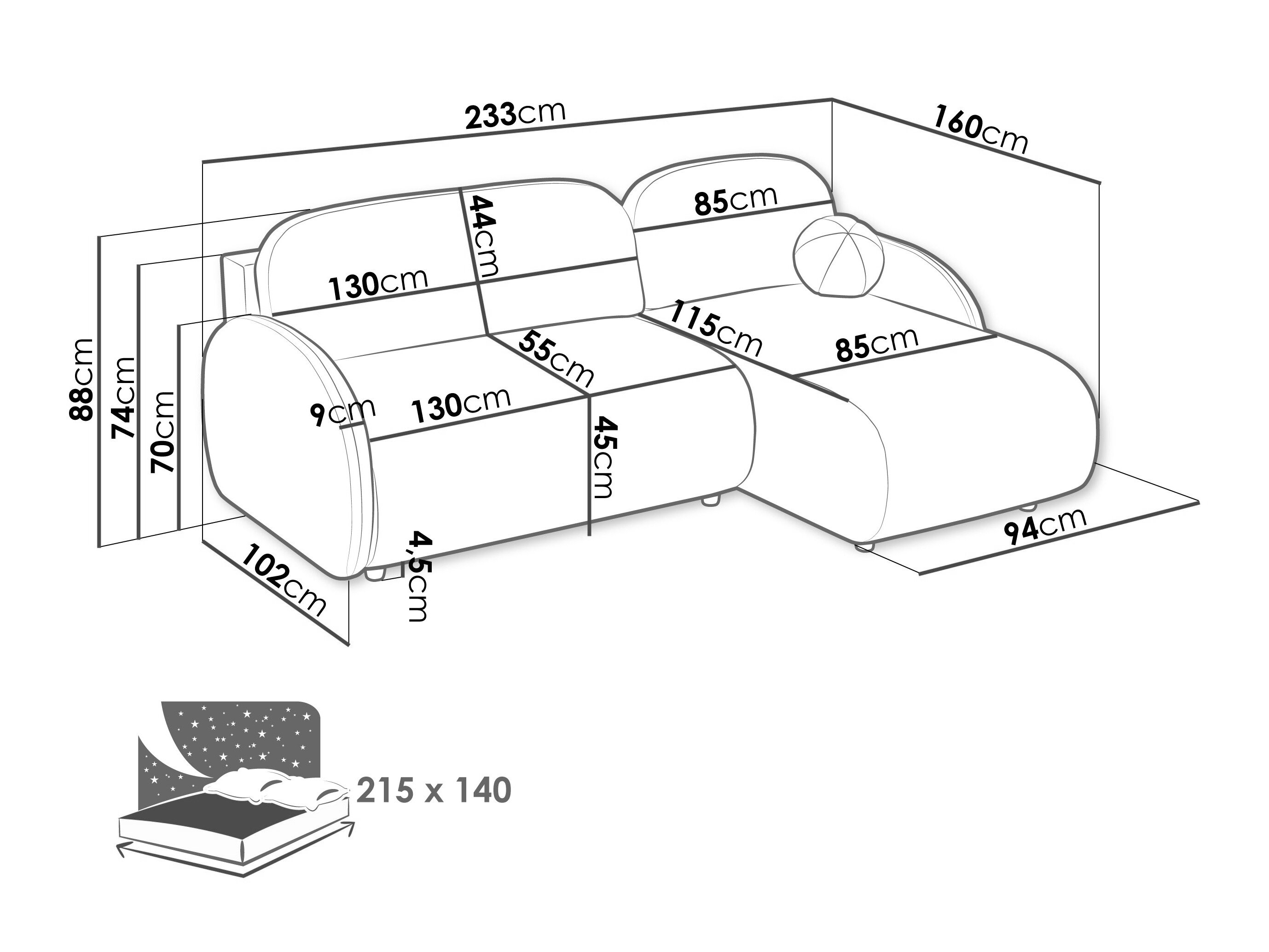 233 cm