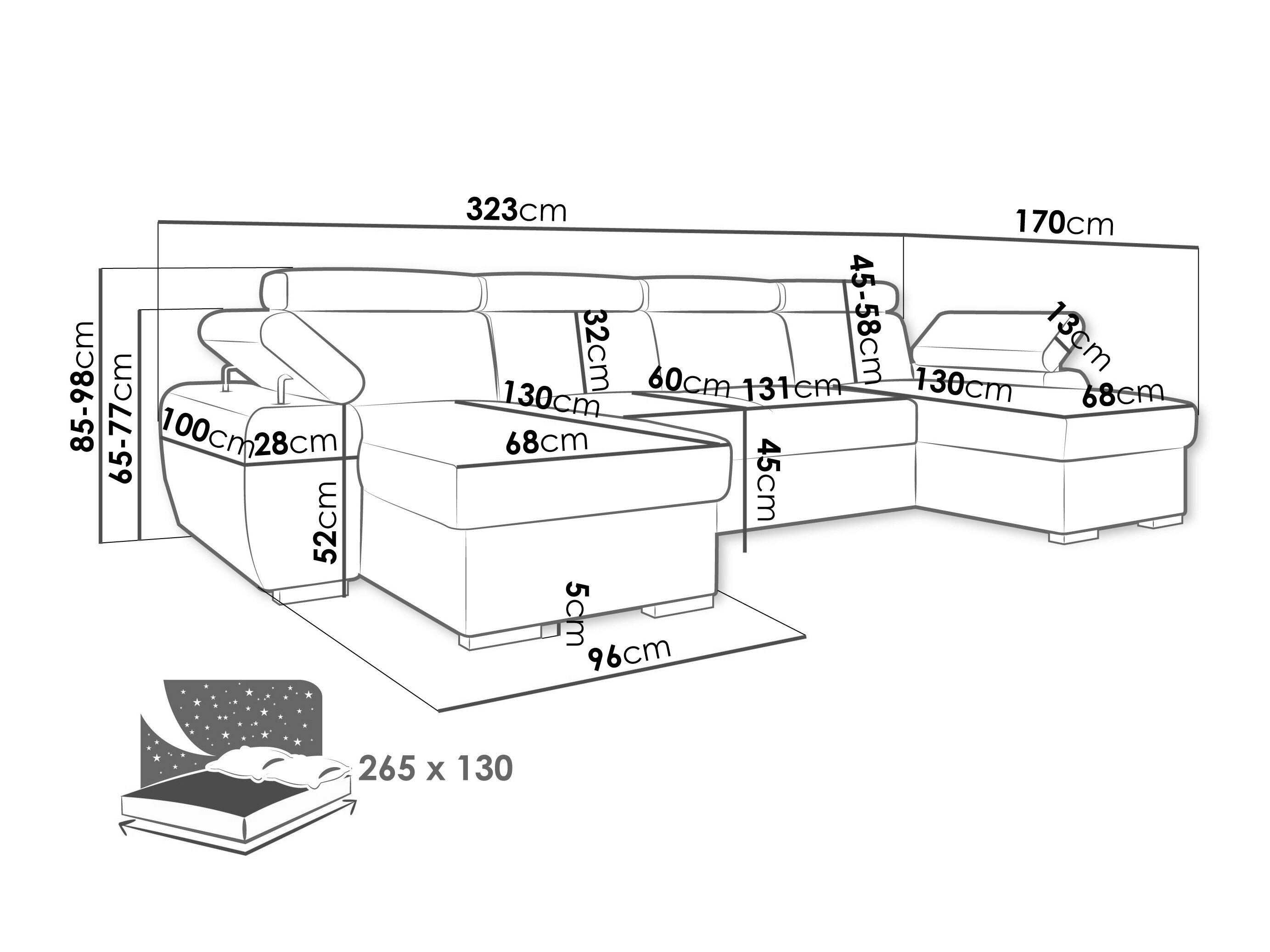 Stoffet på bagsiden af møblet er ikke anderledes end stoffet på hovedmøblet. Du kan placere møbler med denne funktion midt i rummet.