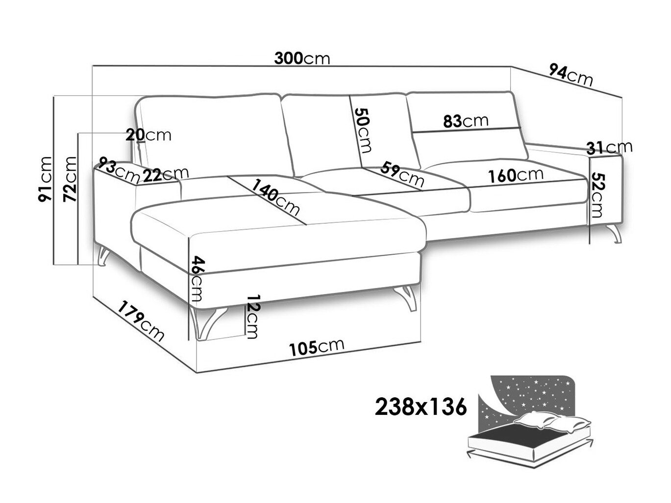 Længde på soveområde: