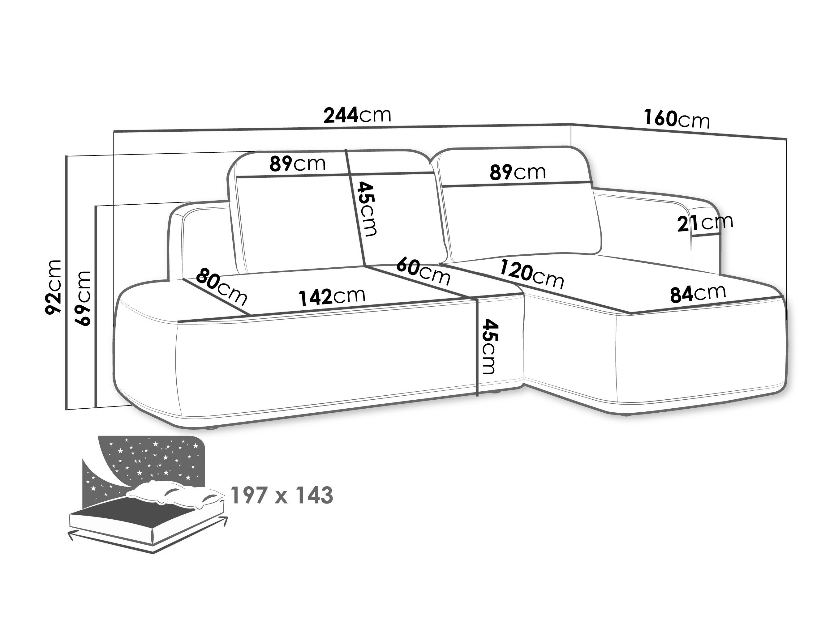 Længde på soveområde: