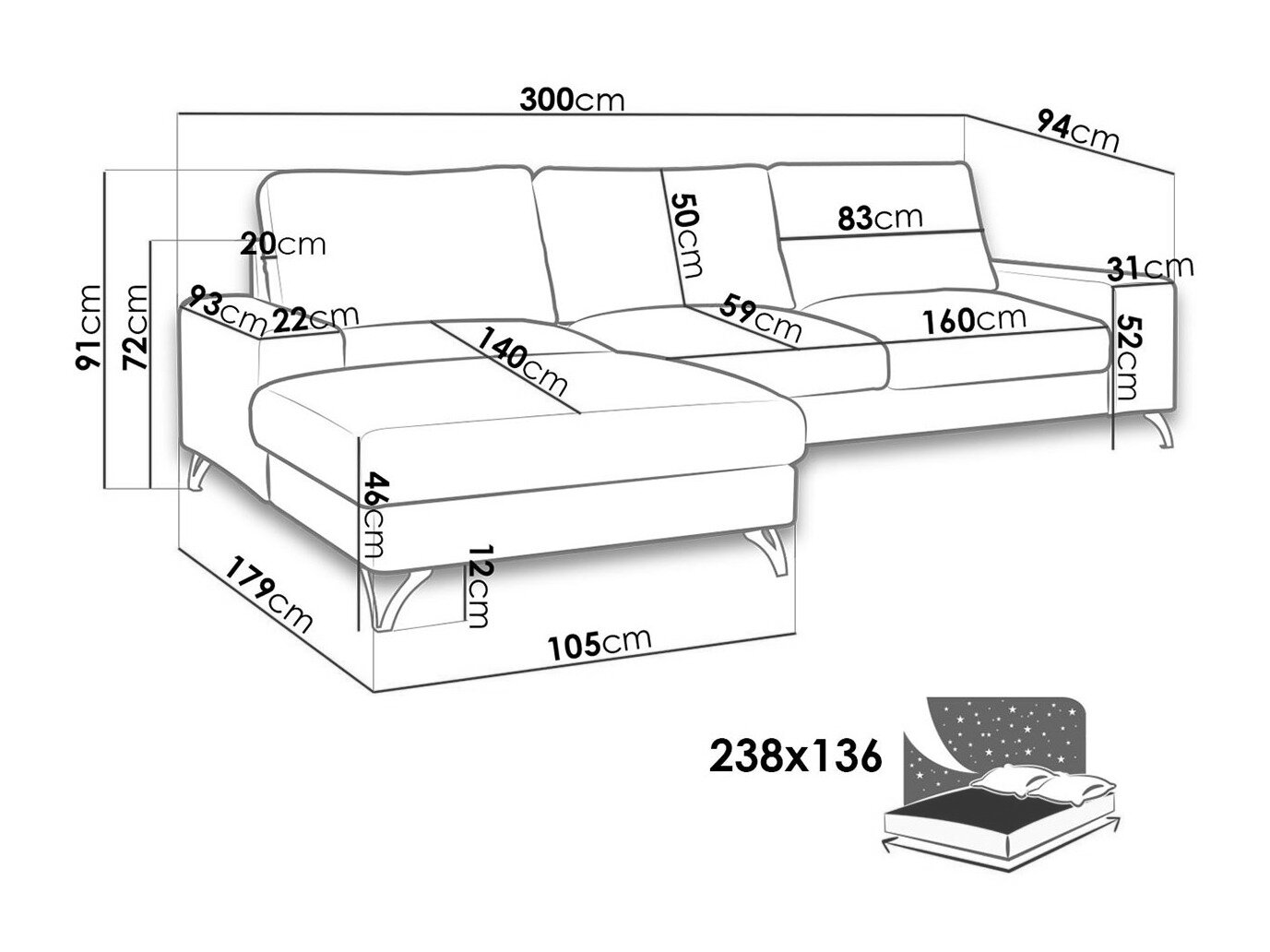 91 cm  300 cm  179 cm