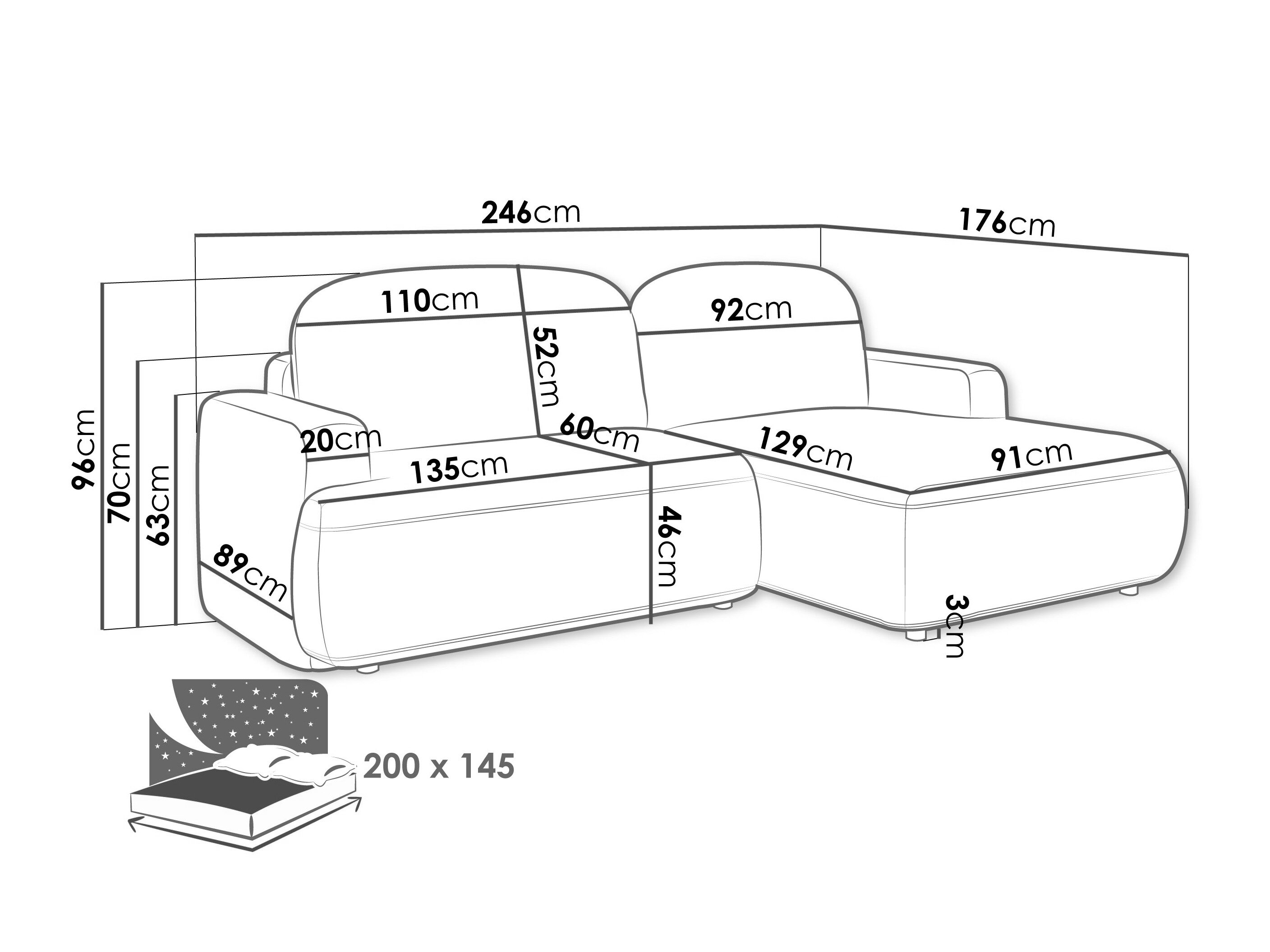 Længde på soveområde: