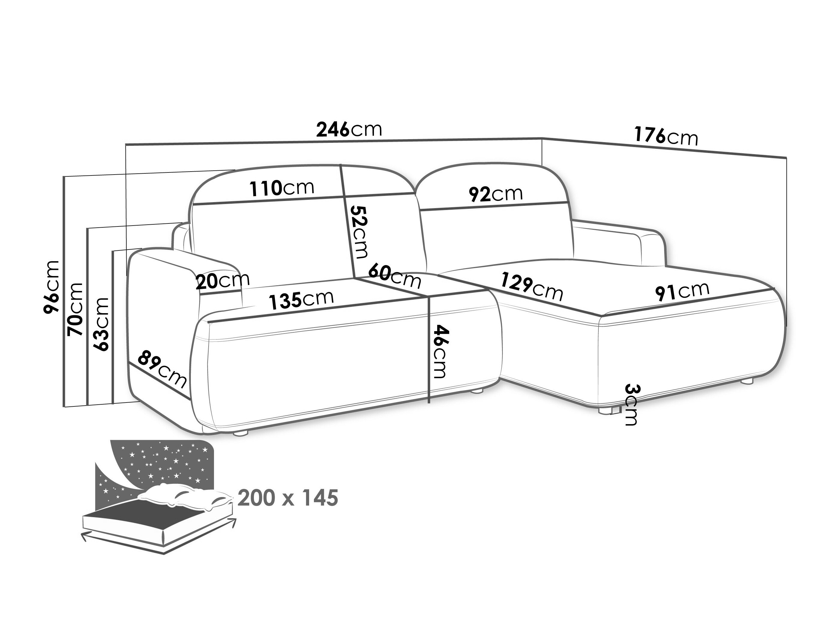 Længde på soveområde: