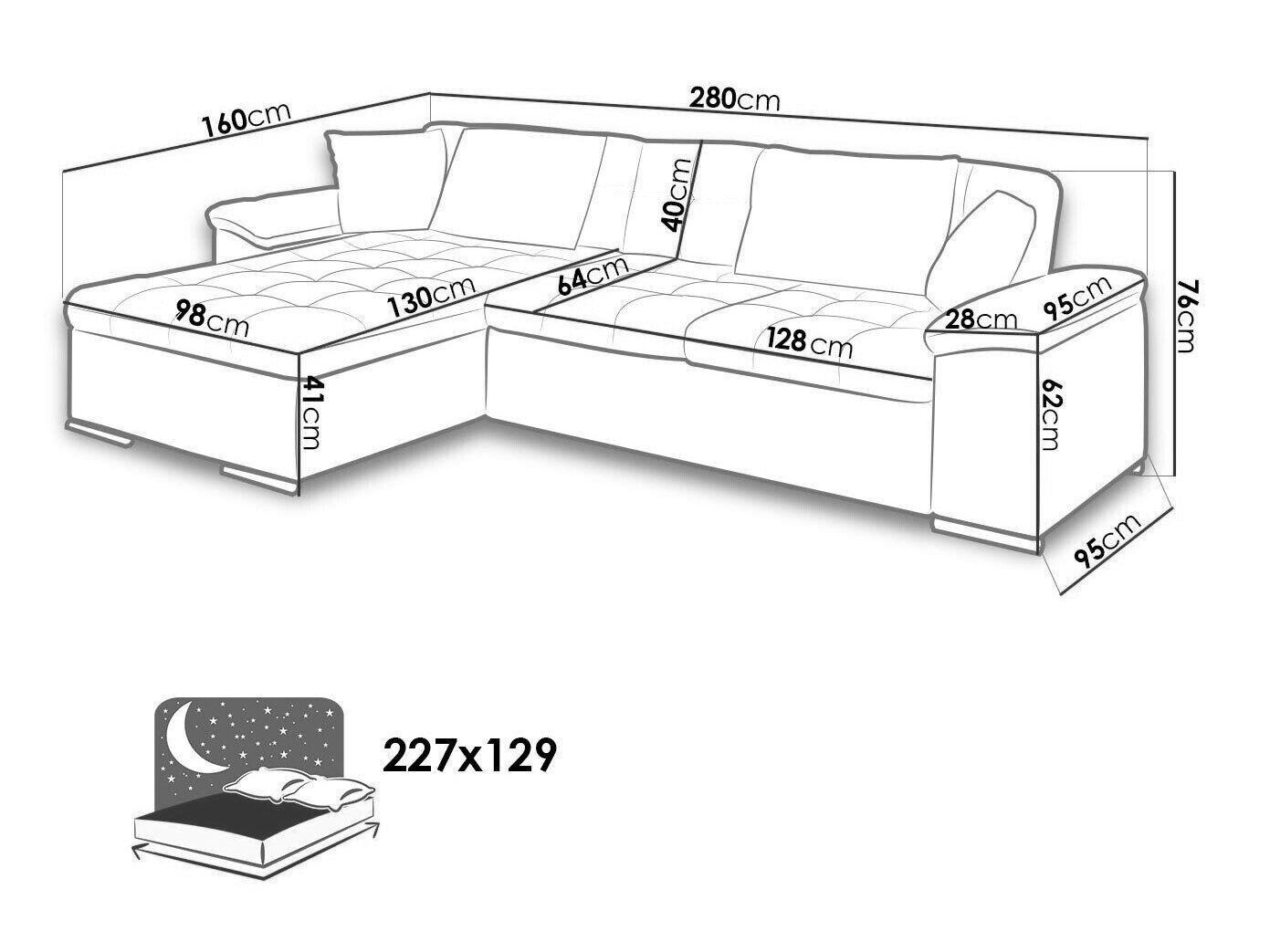 Sengekasse dimensioner: