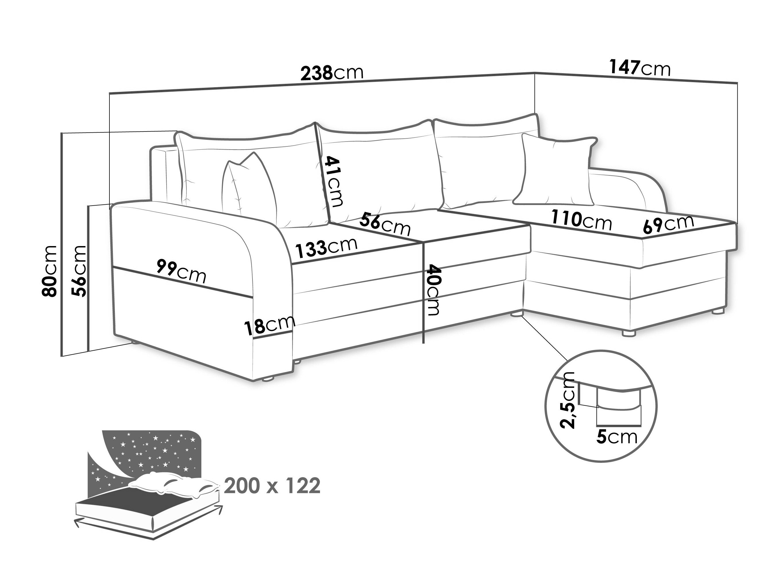 Sengekasse dimensioner: