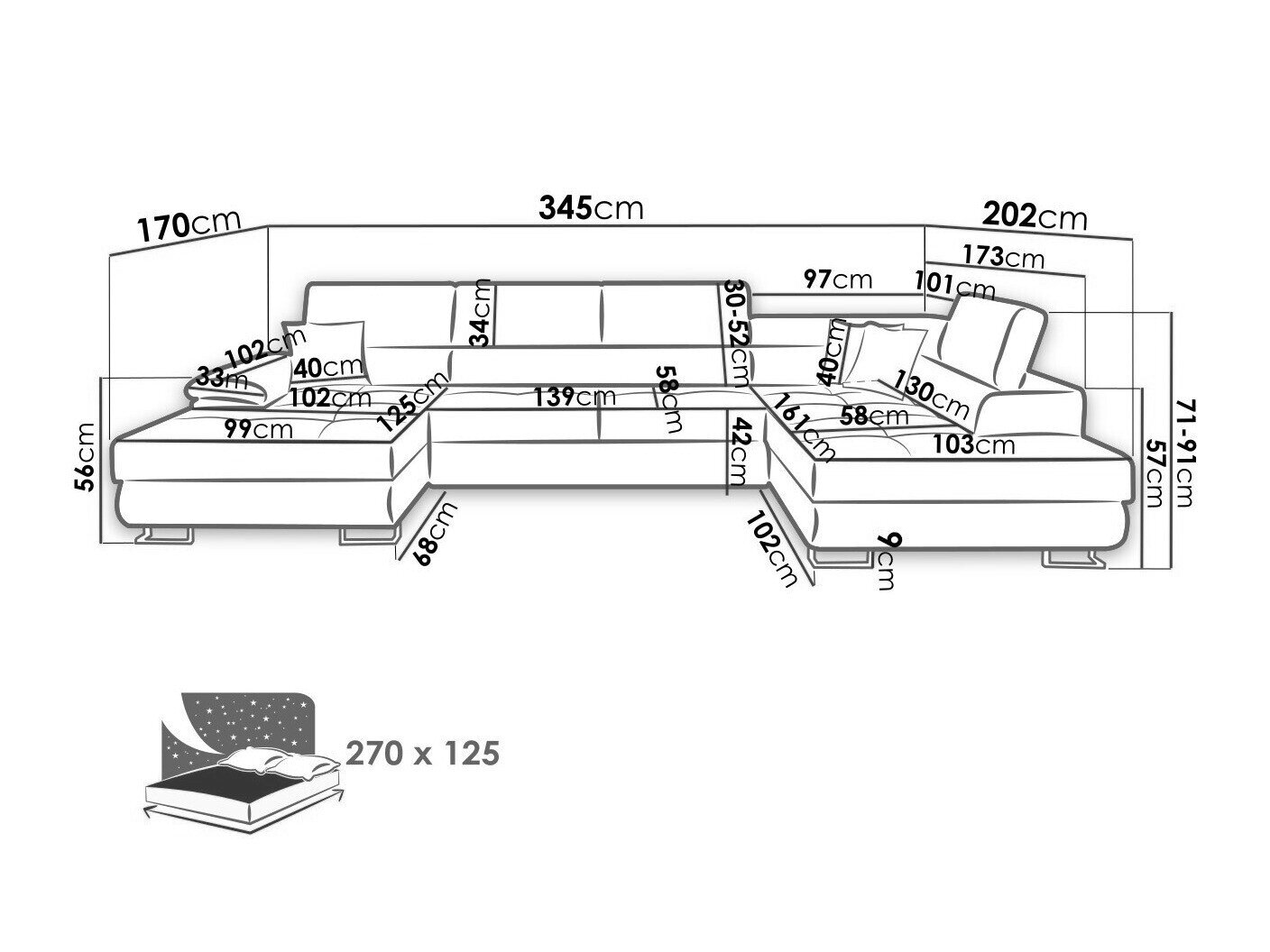 Sengekasse dimensioner: