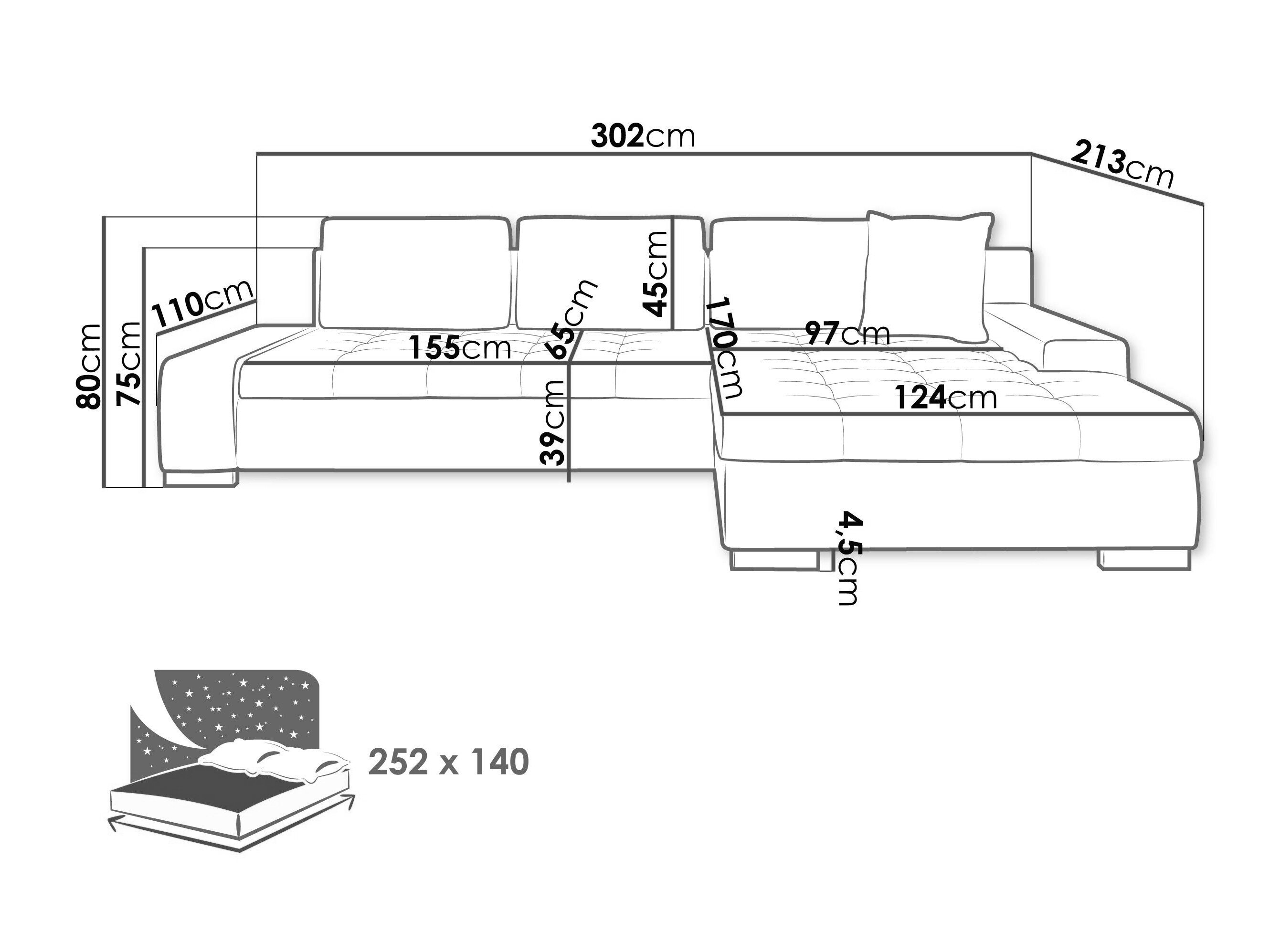 Længde på soveområde: