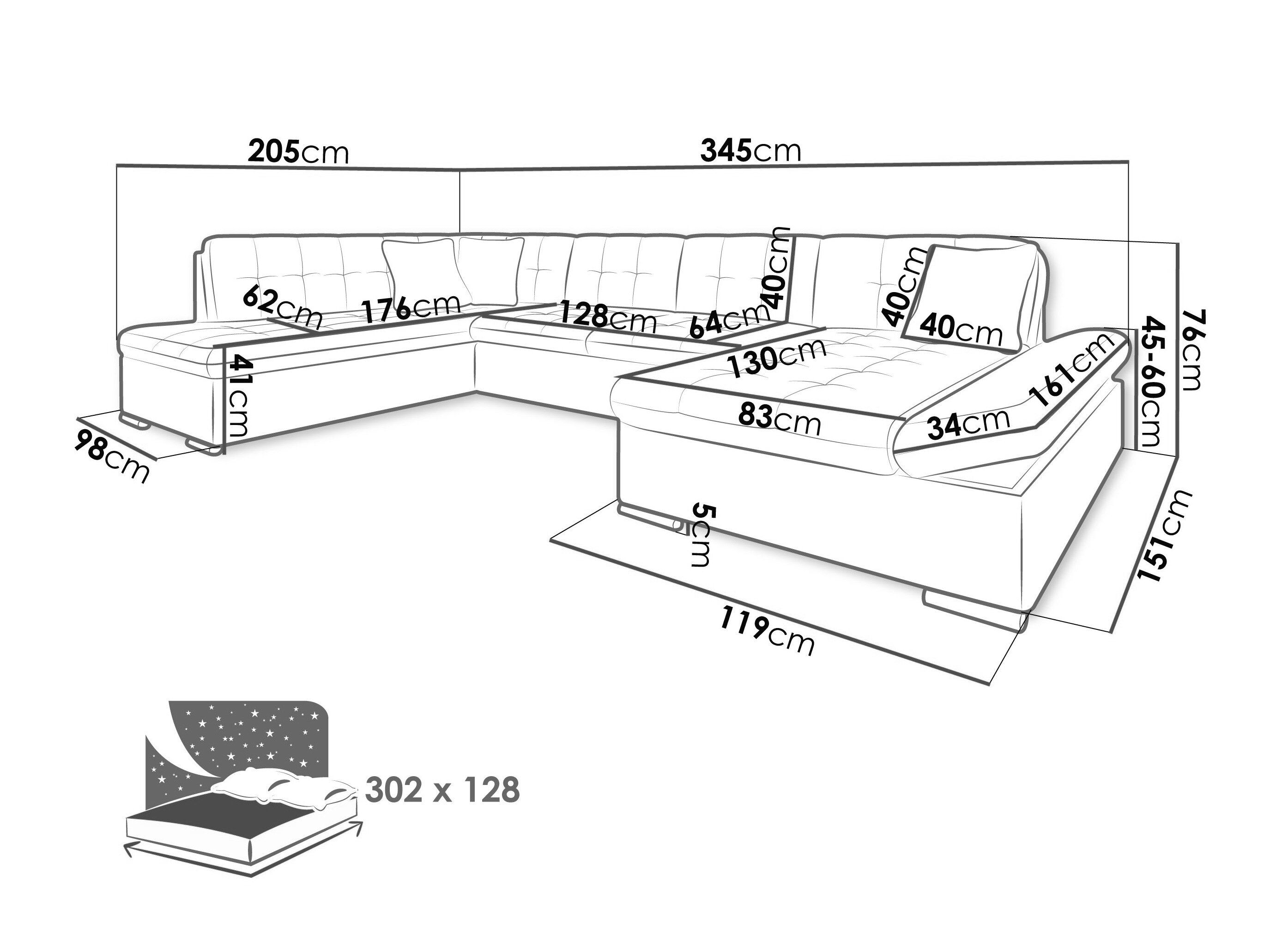 Længde på soveområde: