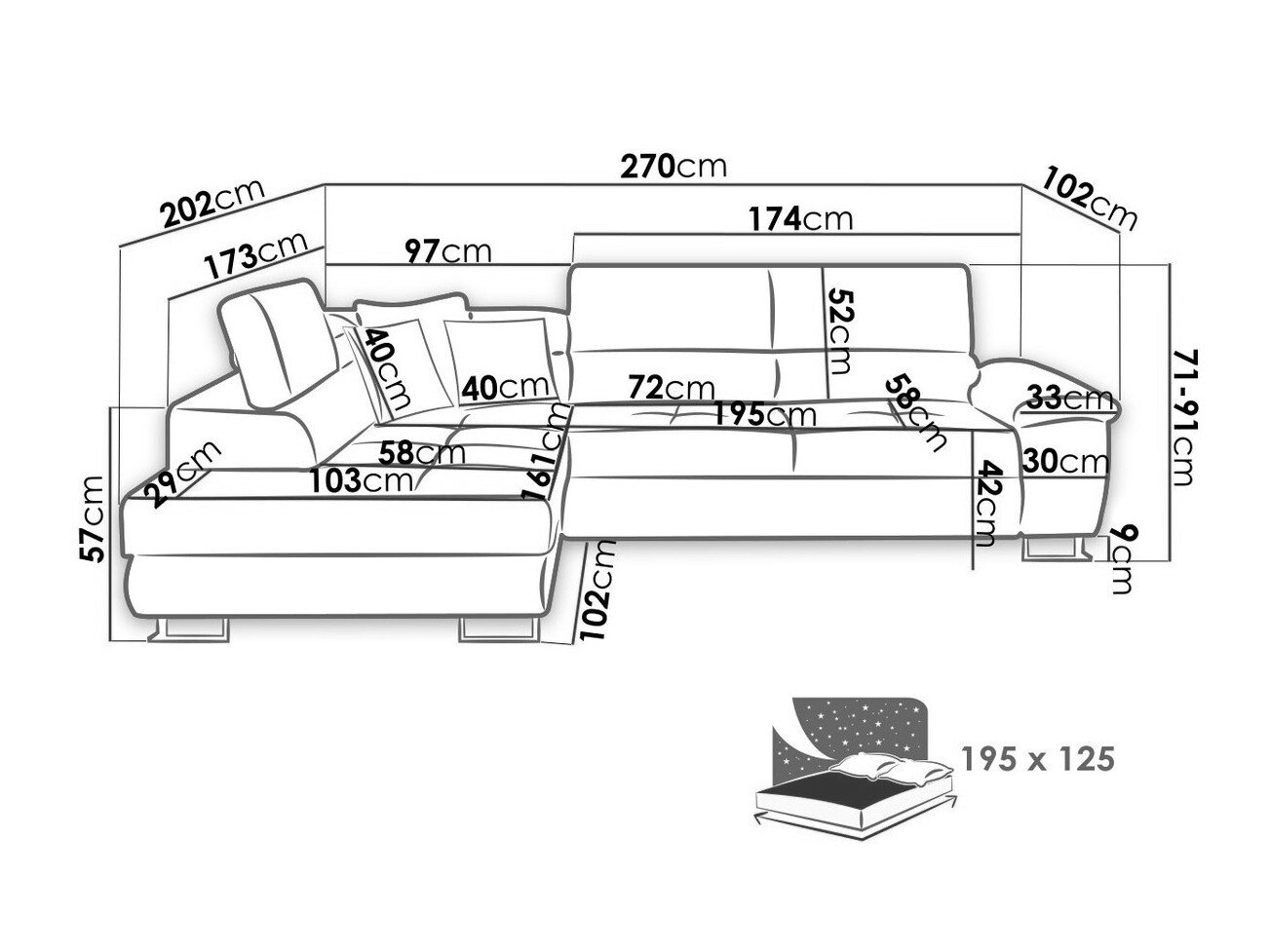 Sengekasse dimensioner: