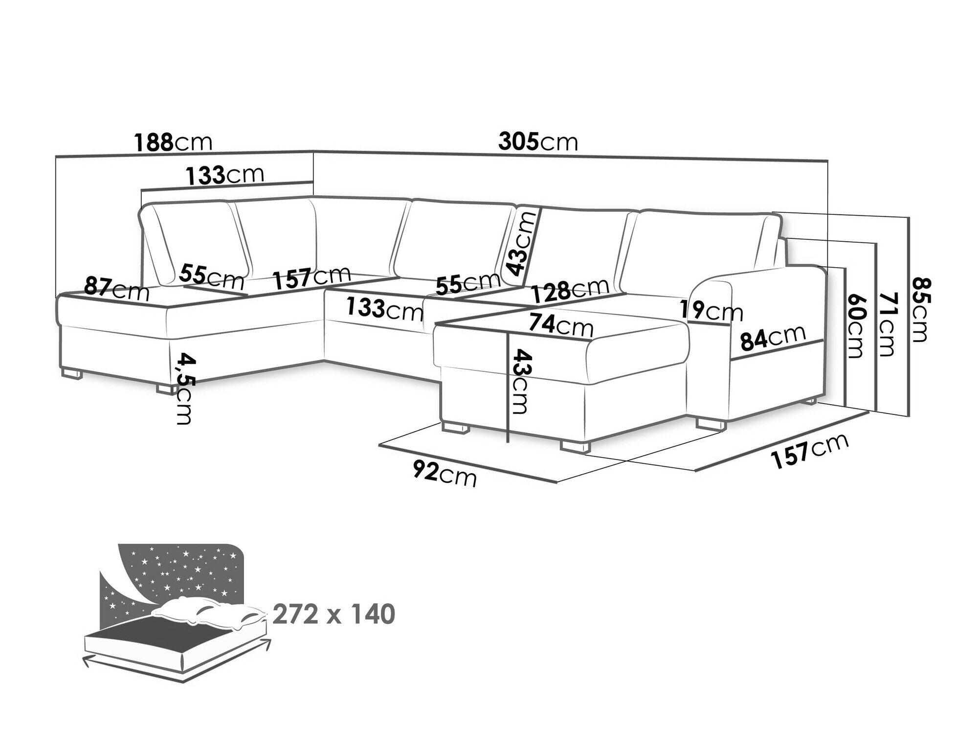 Sengekasse dimensioner: