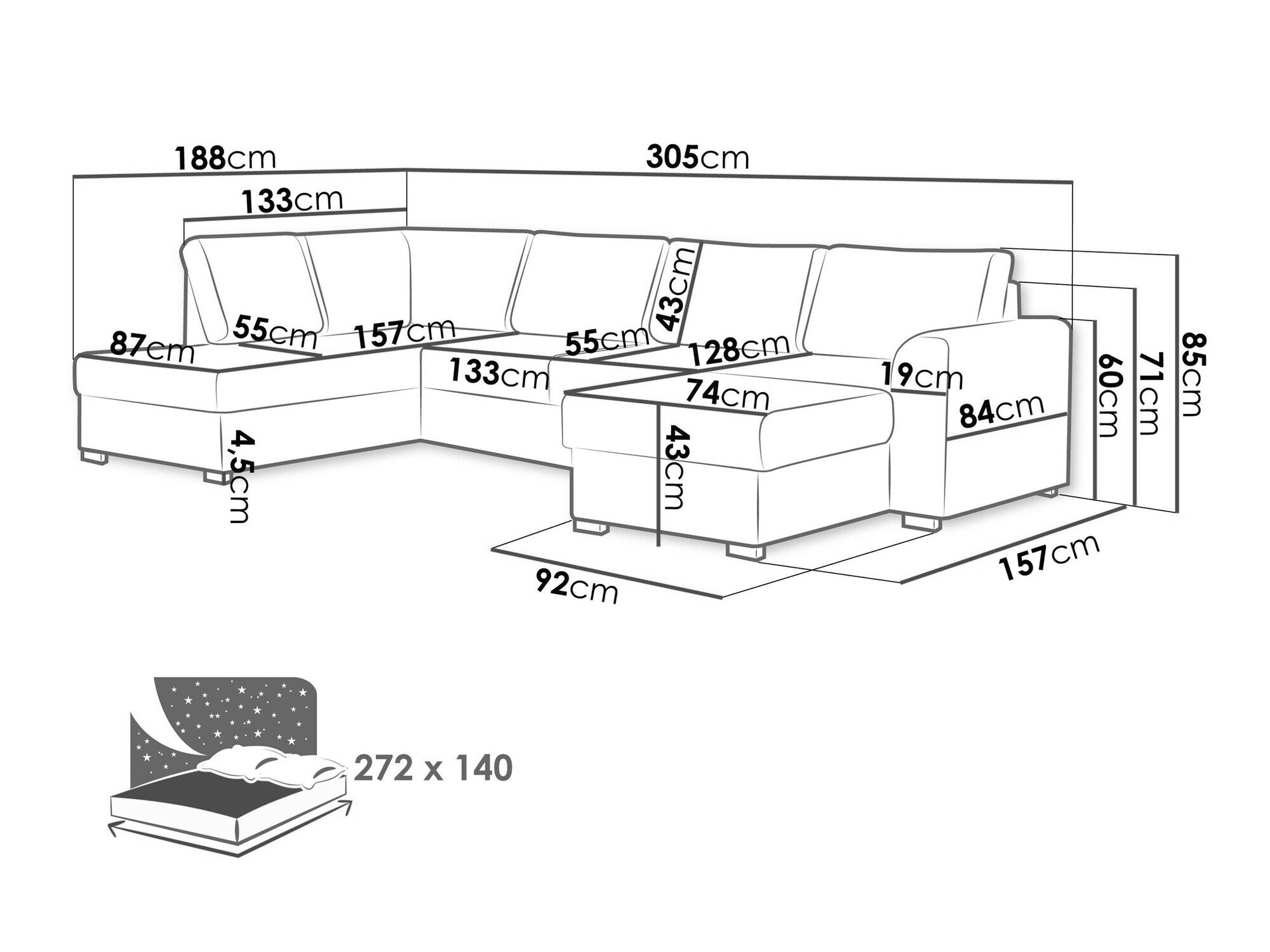 Sengekasse dimensioner: