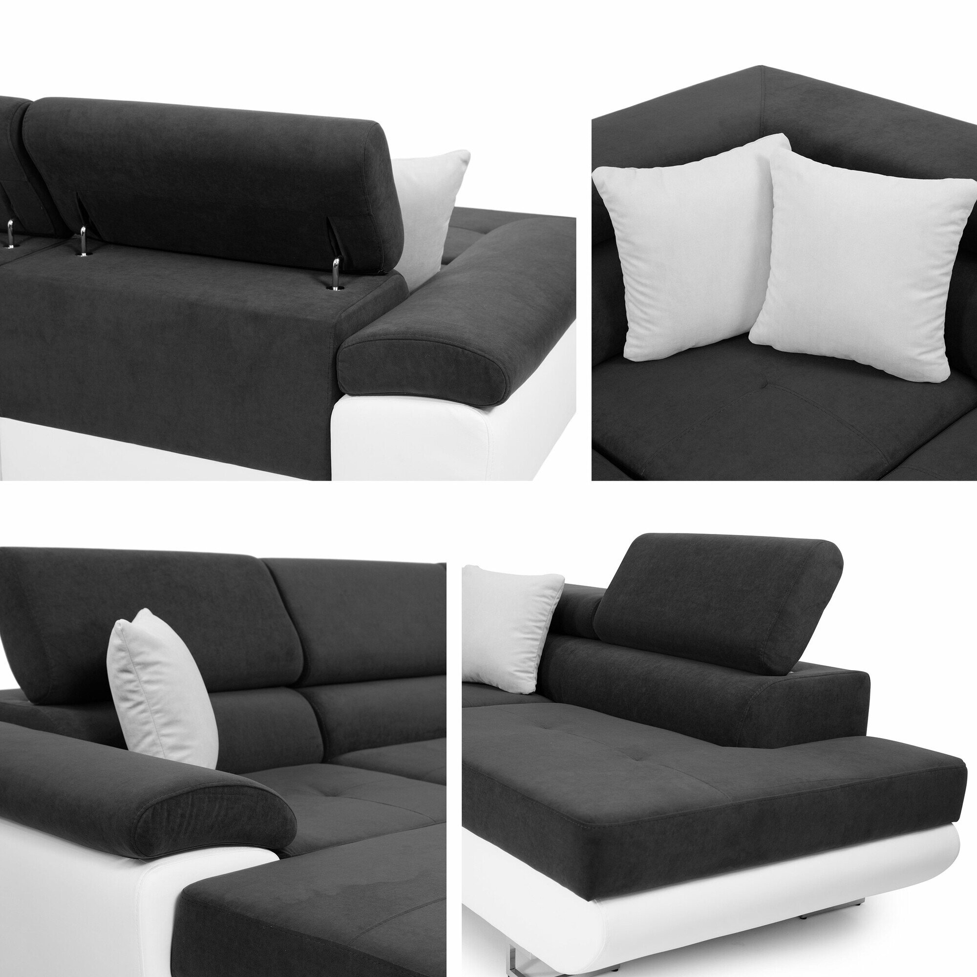 Når du ser på sofaen forfra, vil den forlængede del af venstre-varianten være på din venstre side. Den valgte hjørnevariant bør forbedre rummets flow og gøre det let at bevæge sig rundt i rummet.