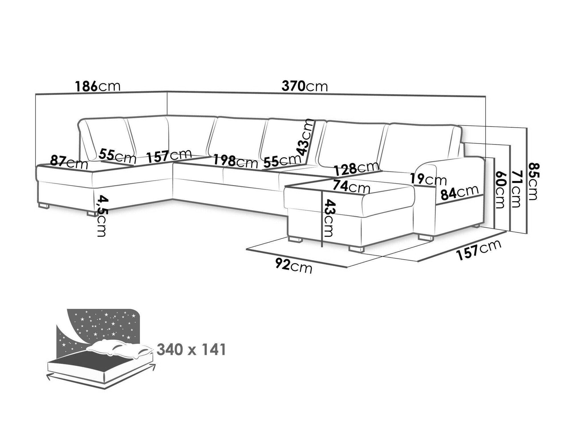 Sengekasse dimensioner: