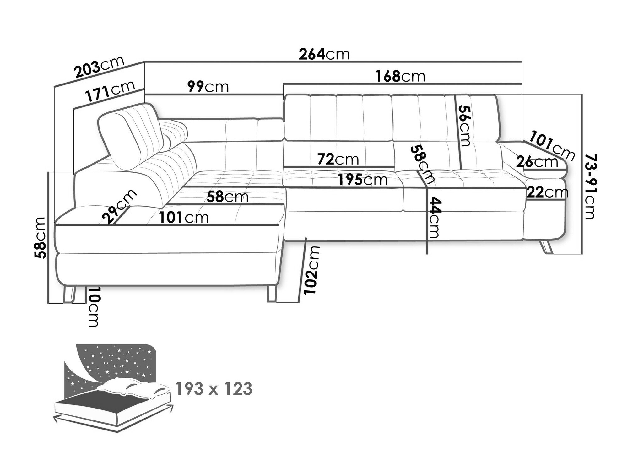 Sengekasse dimensioner: