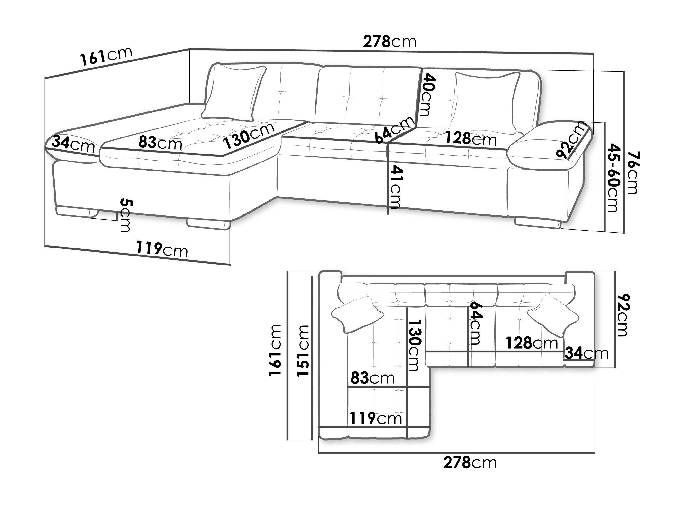 76 cm  278 cm  161 cm