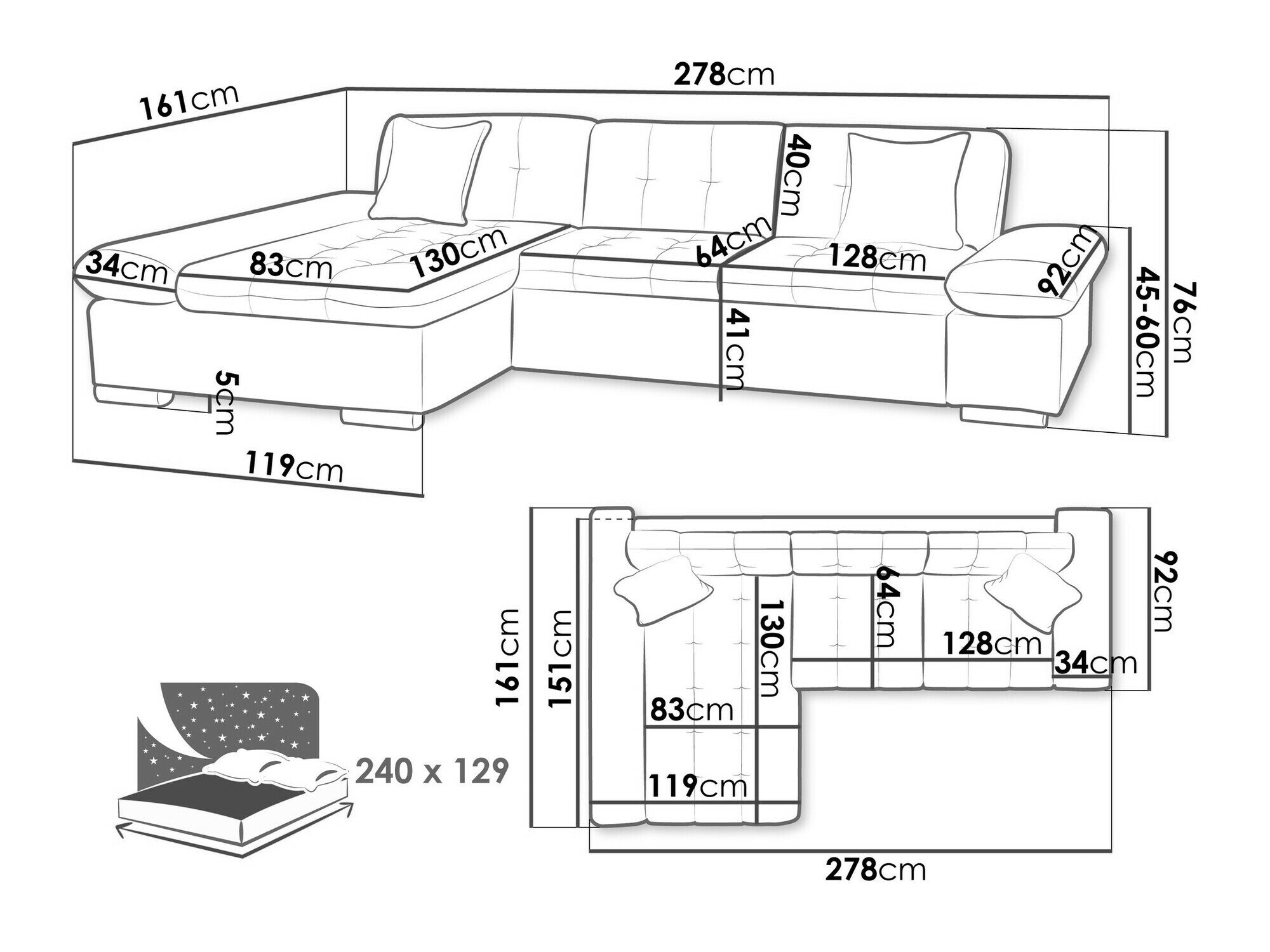 Sengekasse dimensioner:
