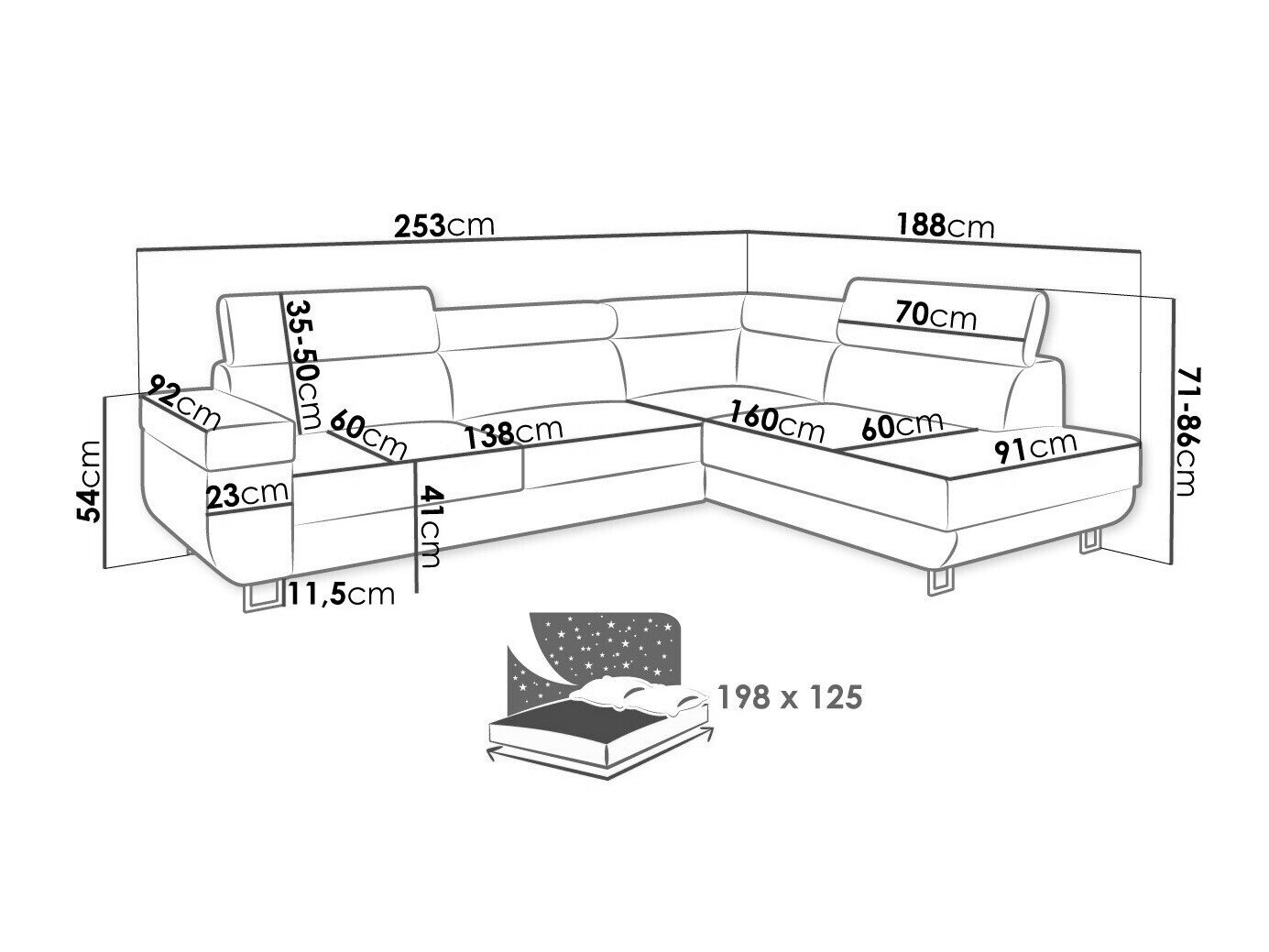 Sengekasse dimensioner: